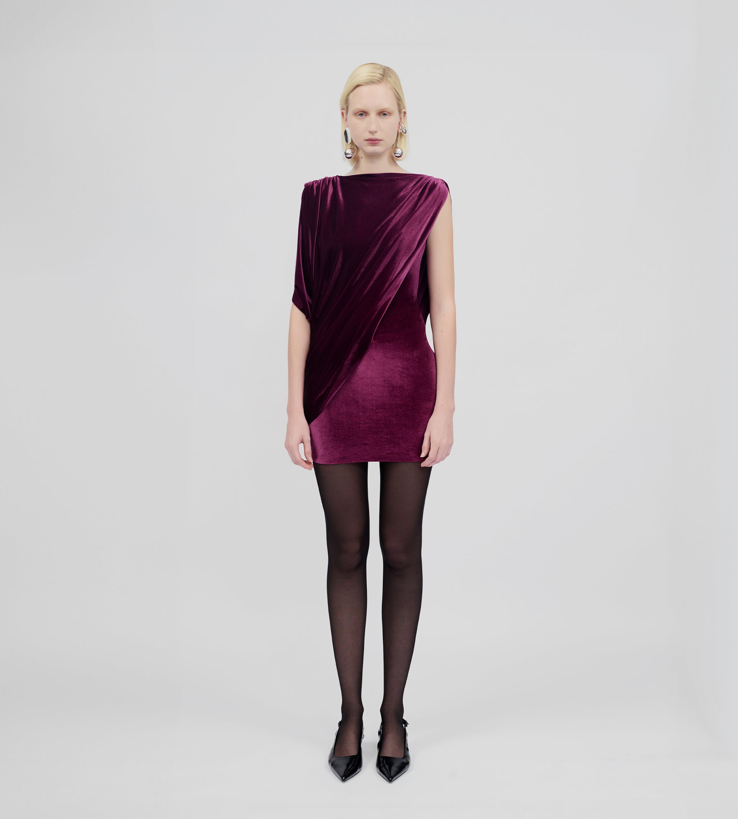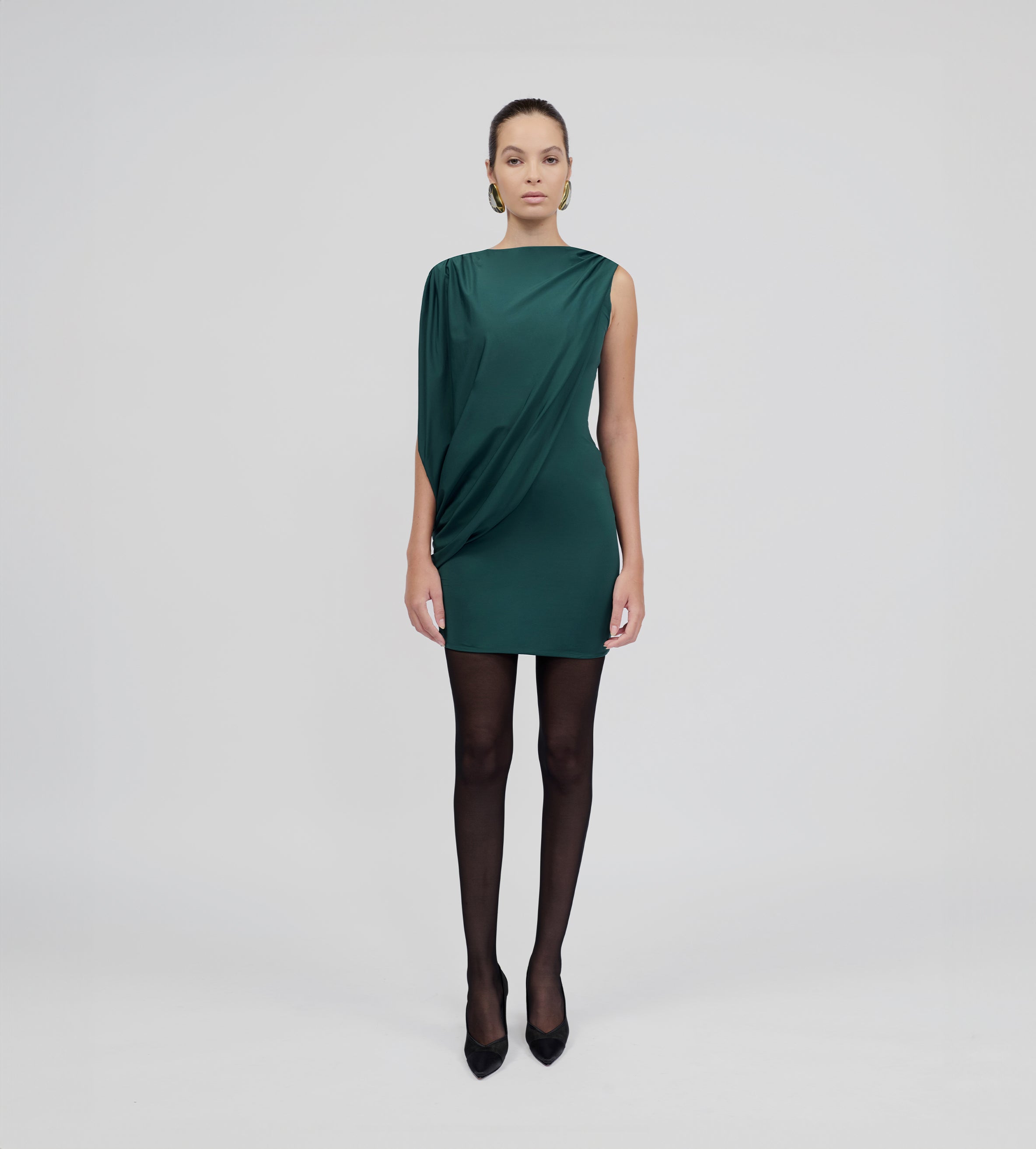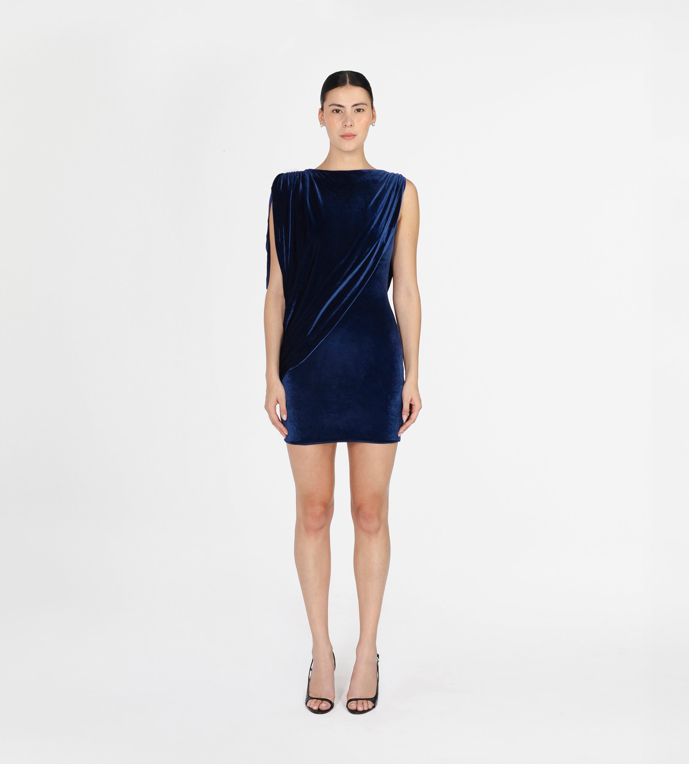 Our Ricaurte mini dress features a scoop neckline with an alluring, enveloping draped