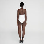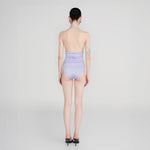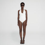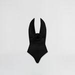 Traje de baño de una pieza, con escote profundo tipo halter y espalda descubierta, lleva un detalle de fruncidos sobre el cuerpo, los cuales abrazan las curvas de cada mujer; decorado con un detalle floral hecho a mano que representa la esencia dinámica y siempre cambiante de la mujer latina.