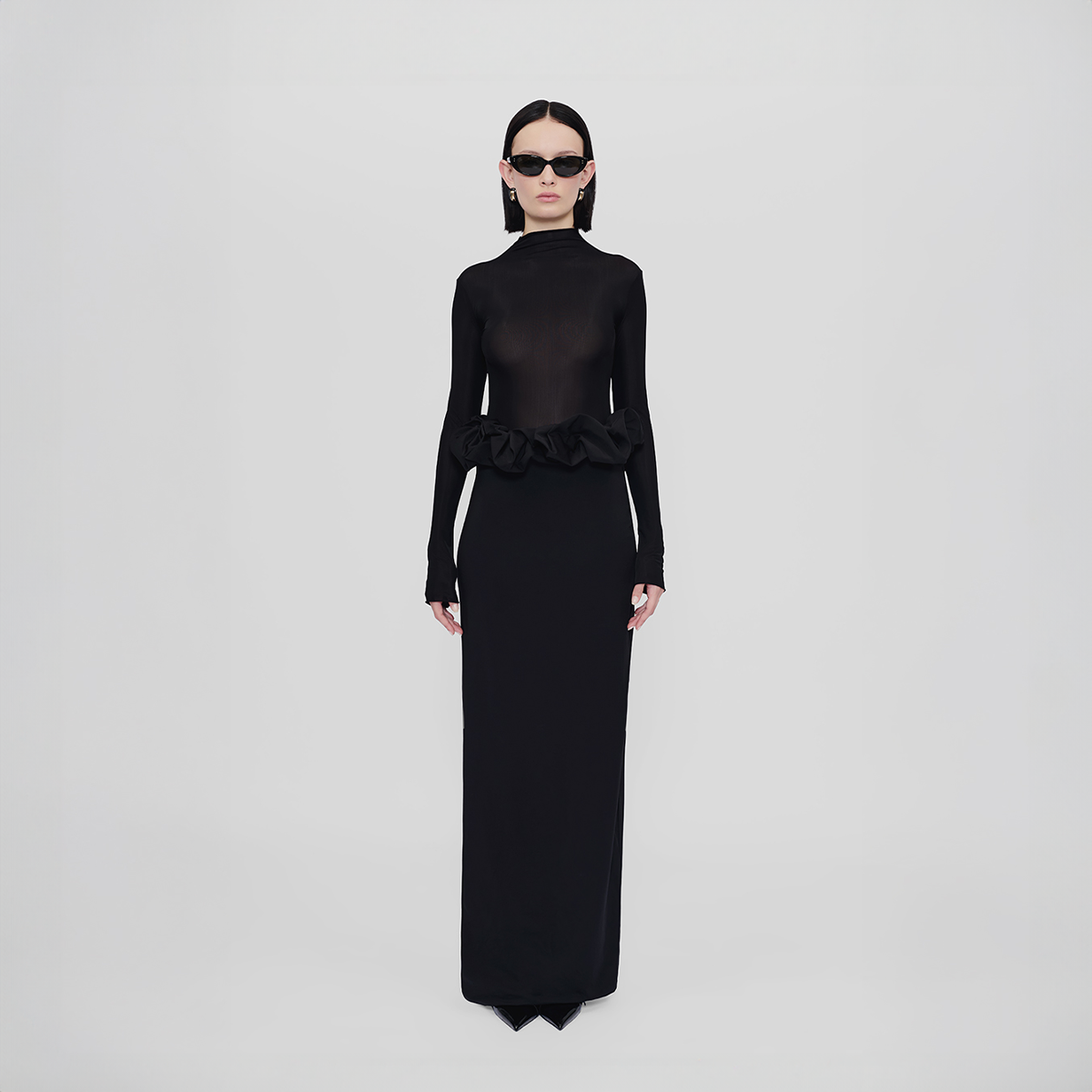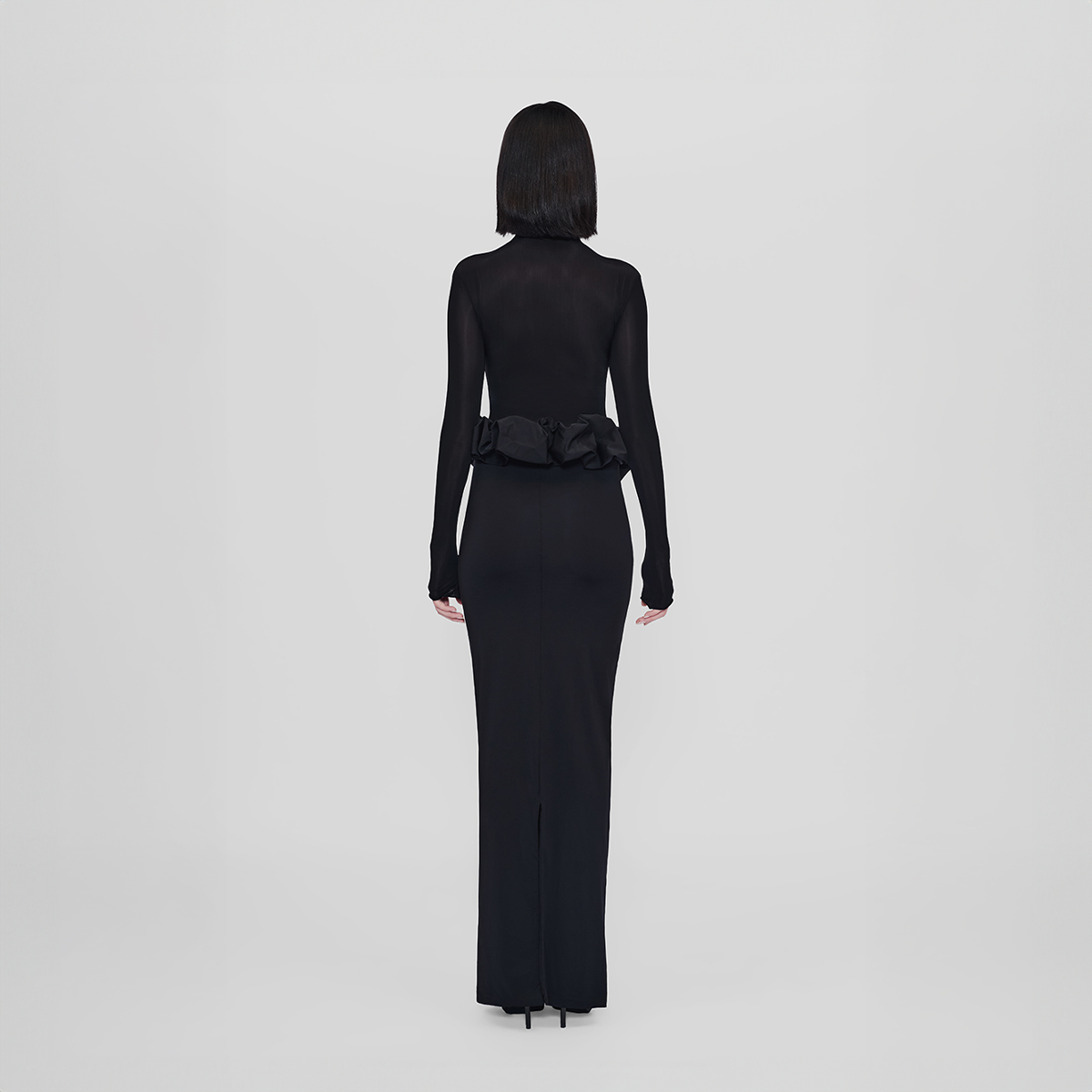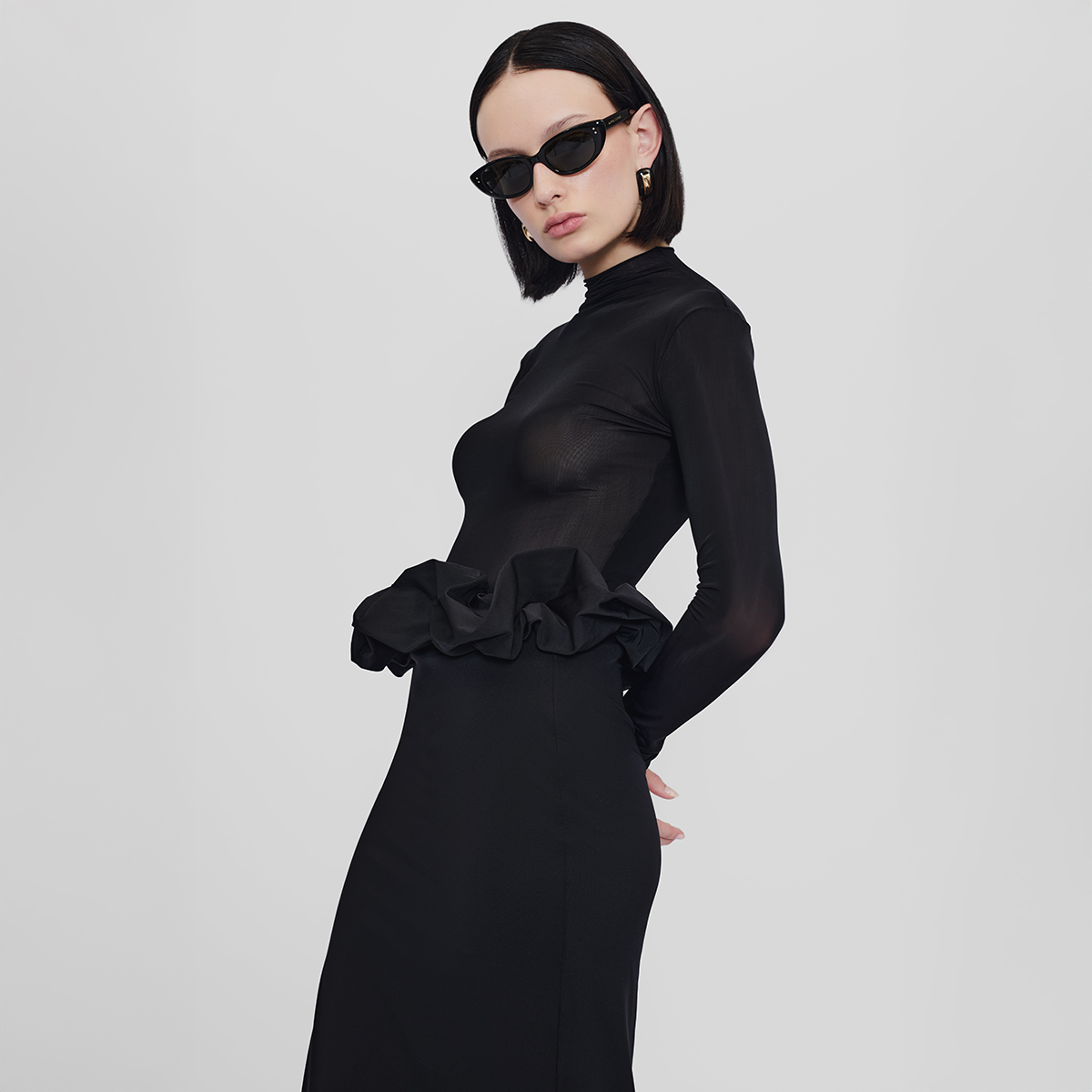 Turtleneck top with long, sleek sleeves and a second-skin fit in our new see-through lycra—your ultimate go-to piece, ready to stand out in any climate, occasion, or event.