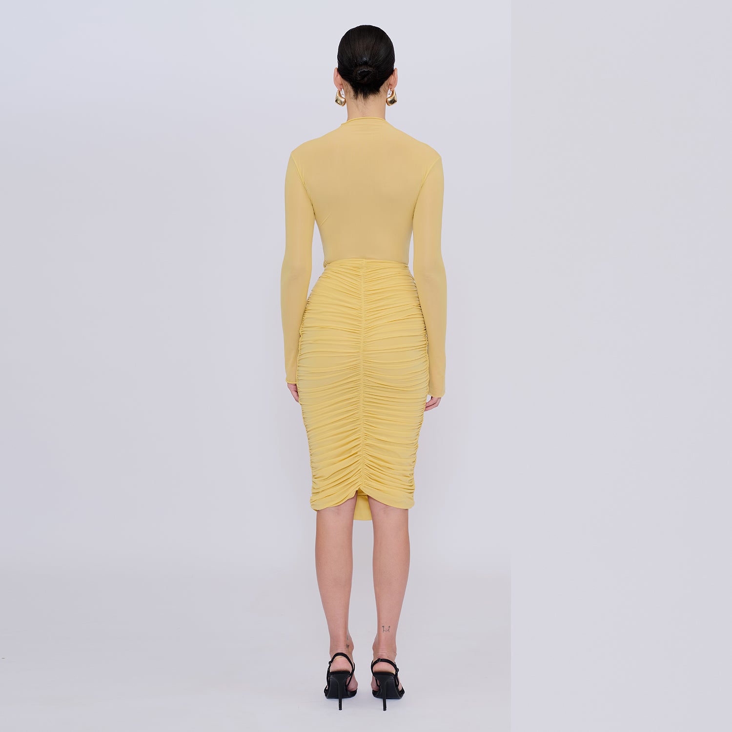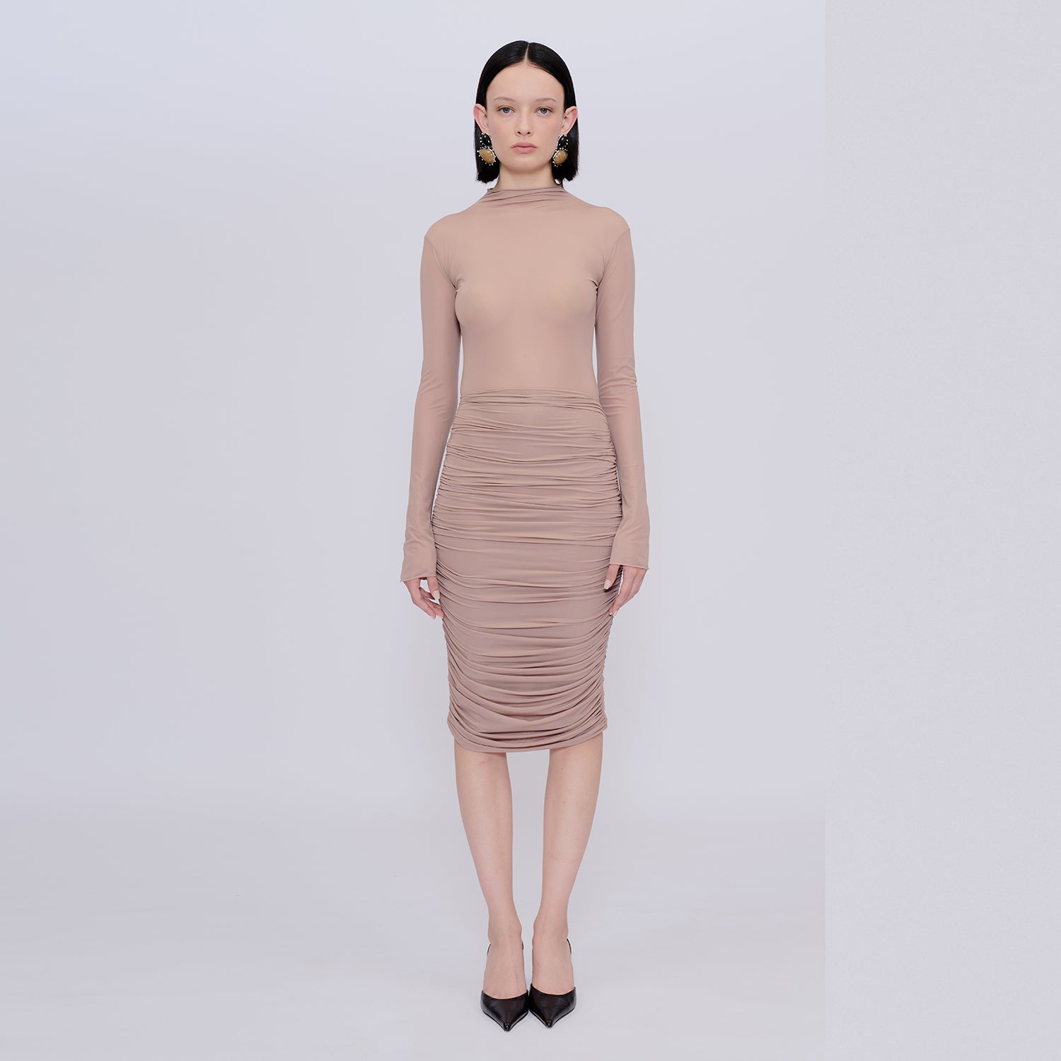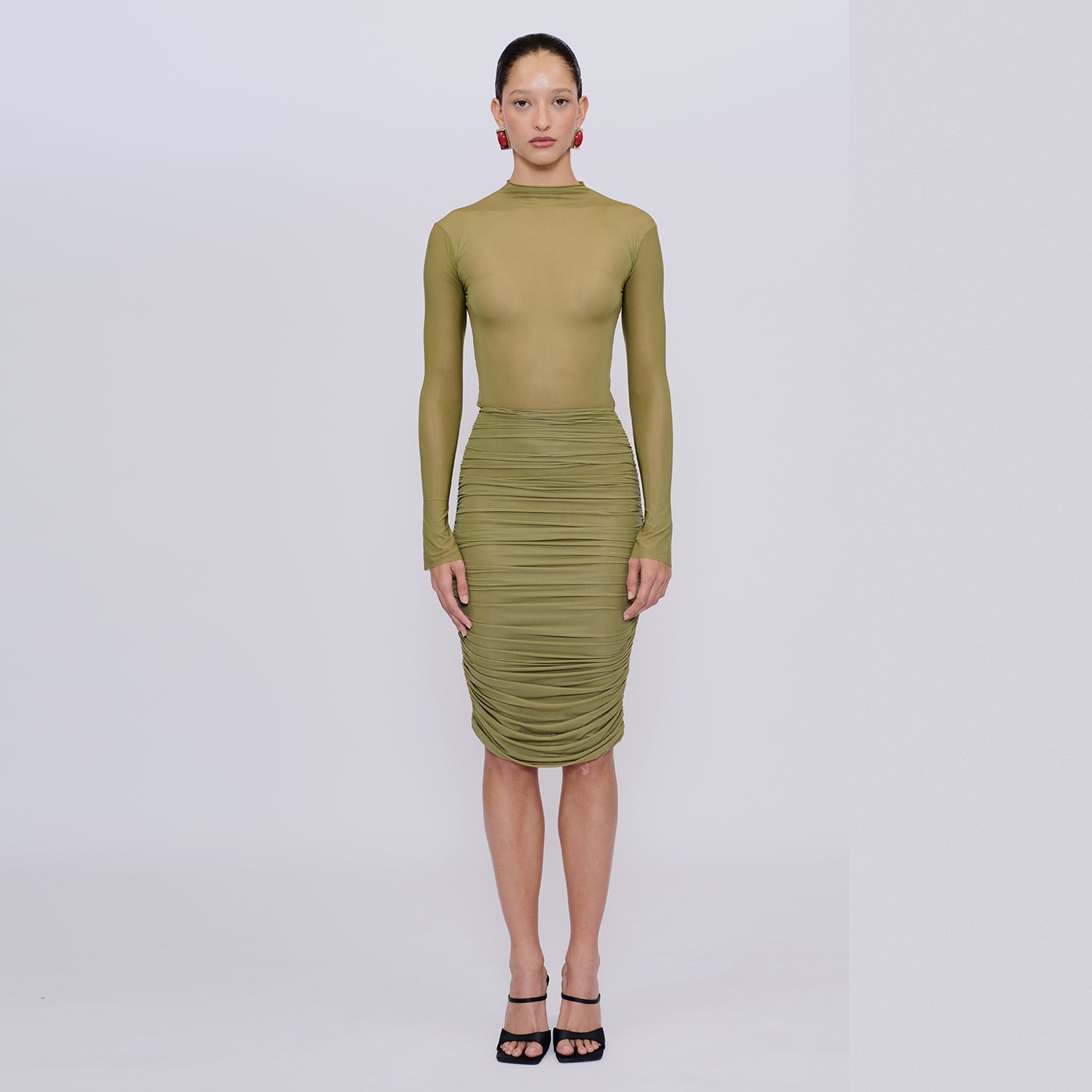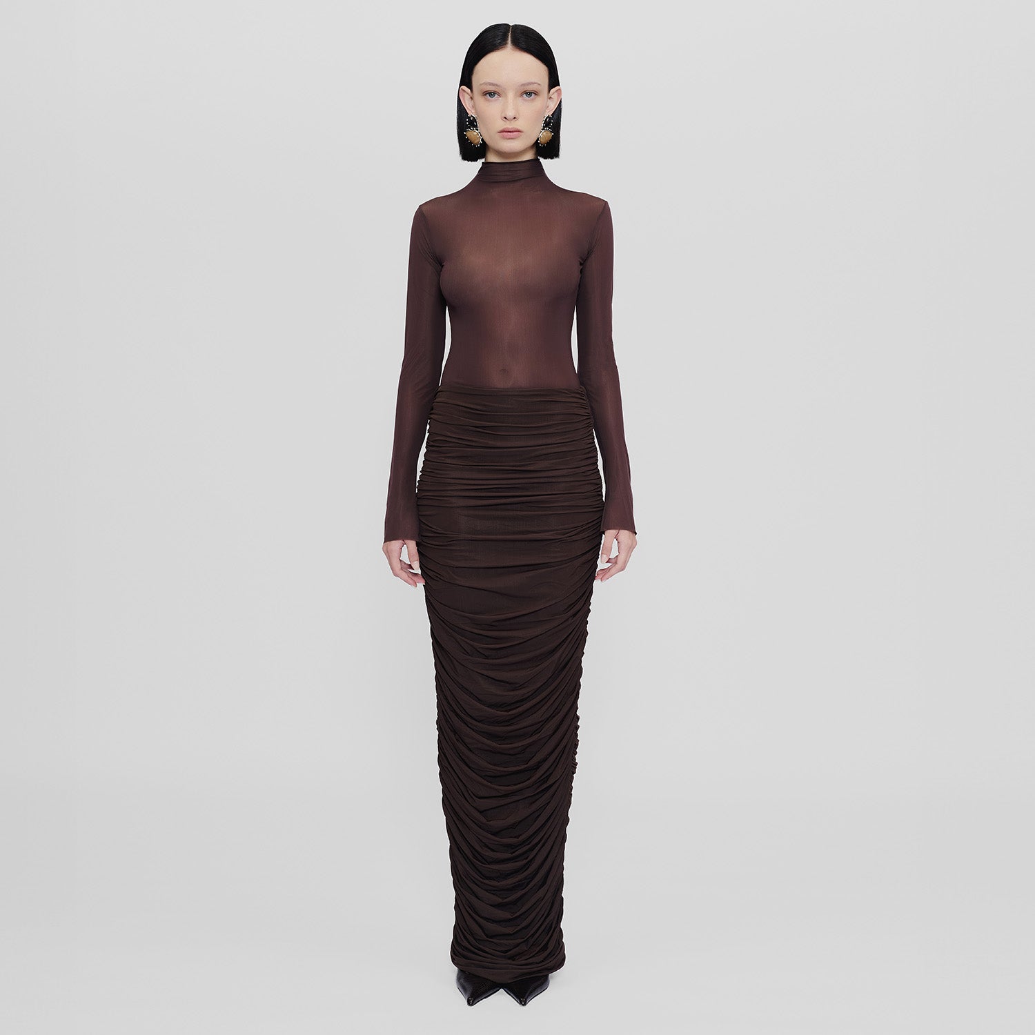 Turtleneck top with long, sleek sleeves and a second-skin fit in our new see-through lycra—your ultimate go-to piece, ready to stand out in any climate, occasion, or event.