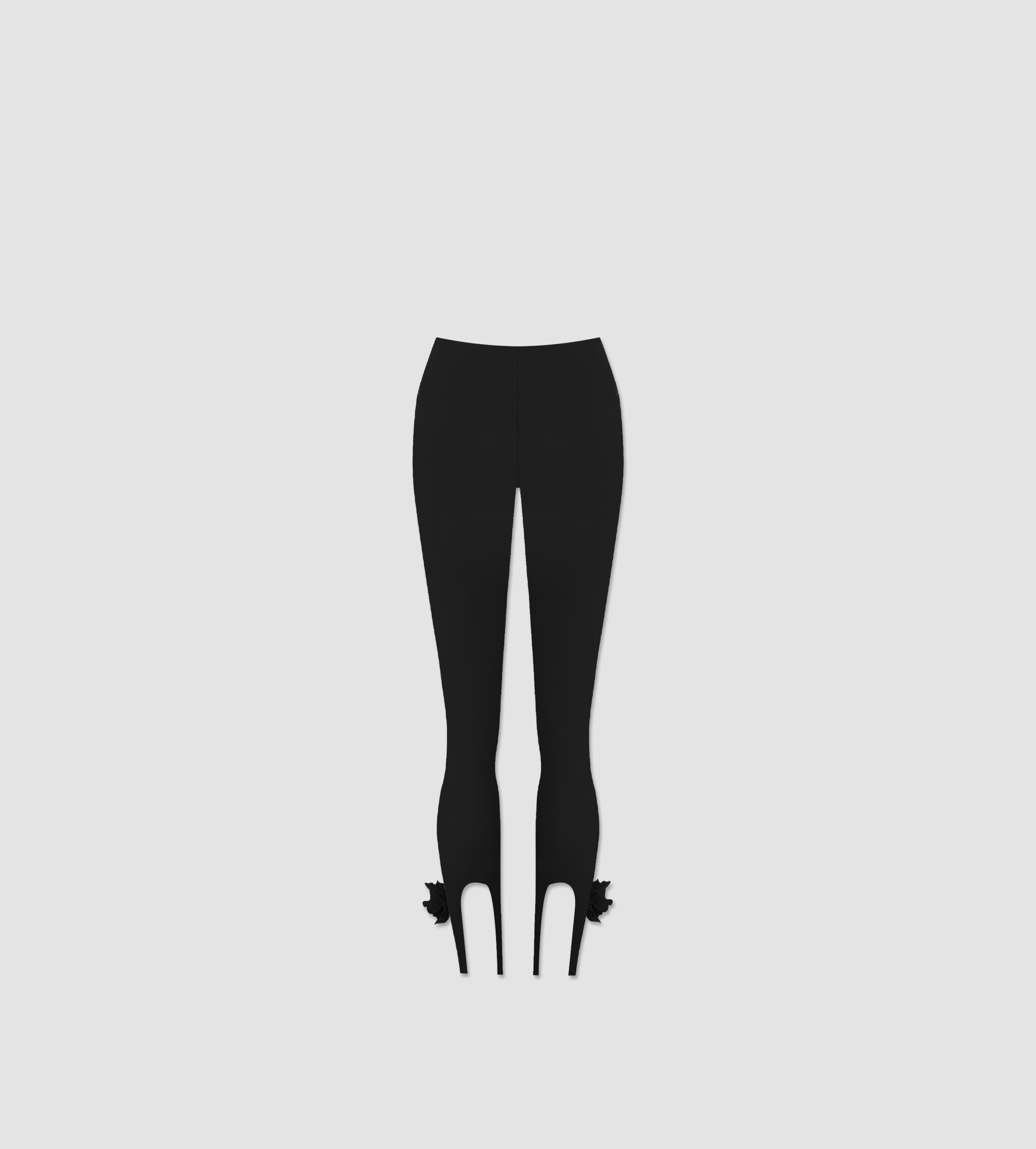 High-waisted fitted pants with stirrups and 3D handmade floral details on the sides, your perfect companion to elevate your everyday looks.