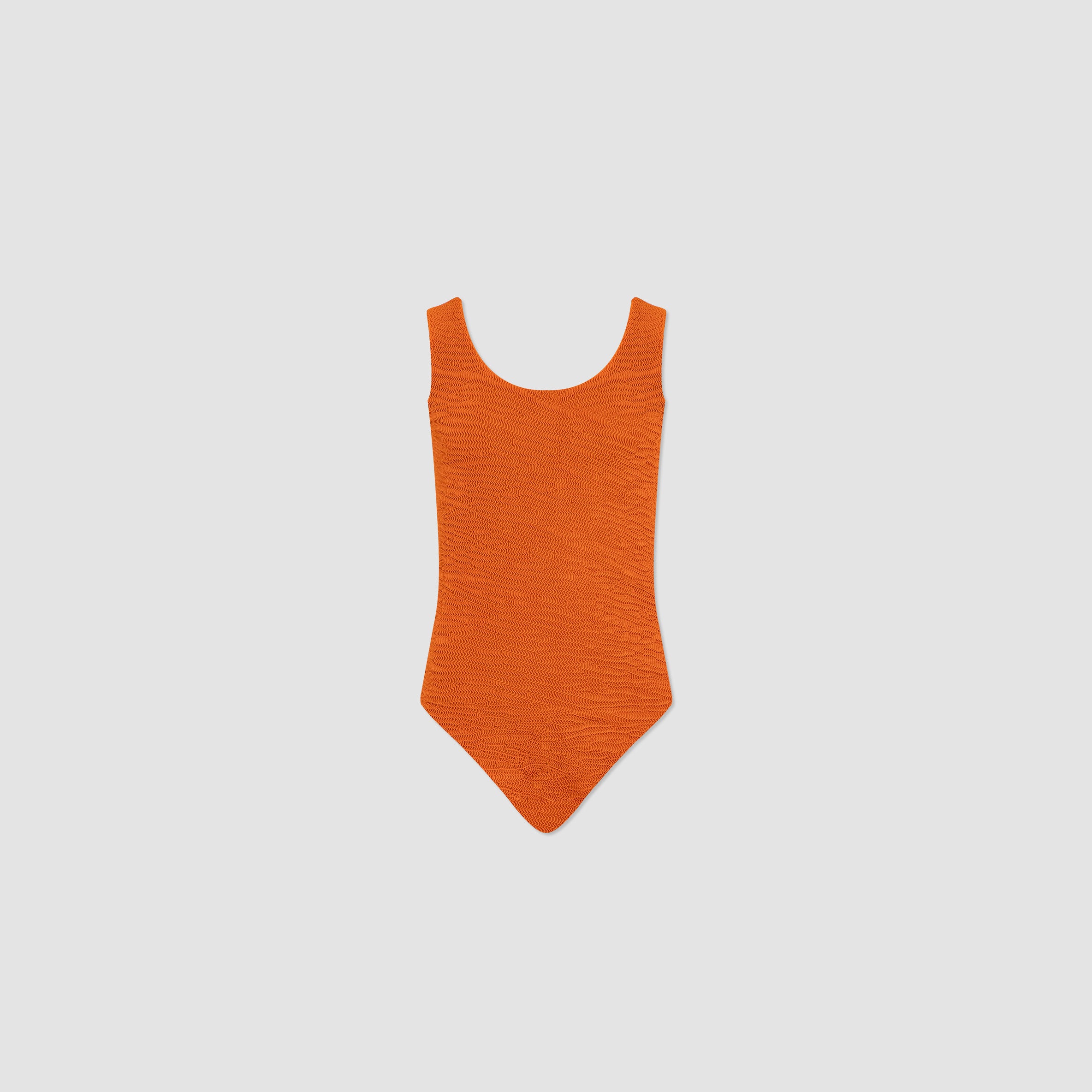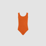 One-piece girls’ swimsuit featuring a ribbed texture and a classic design that provides comfort and freedom of movement.