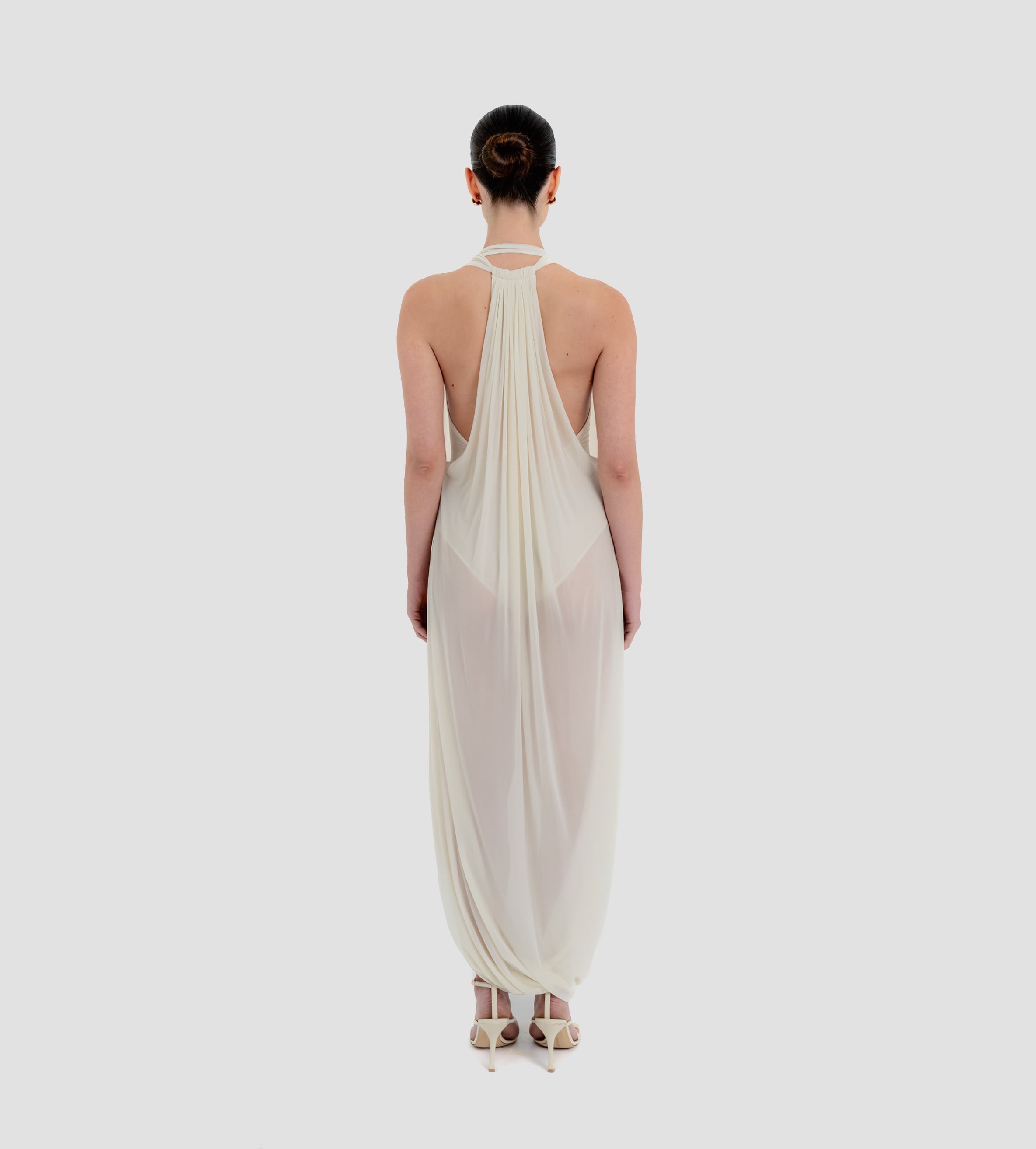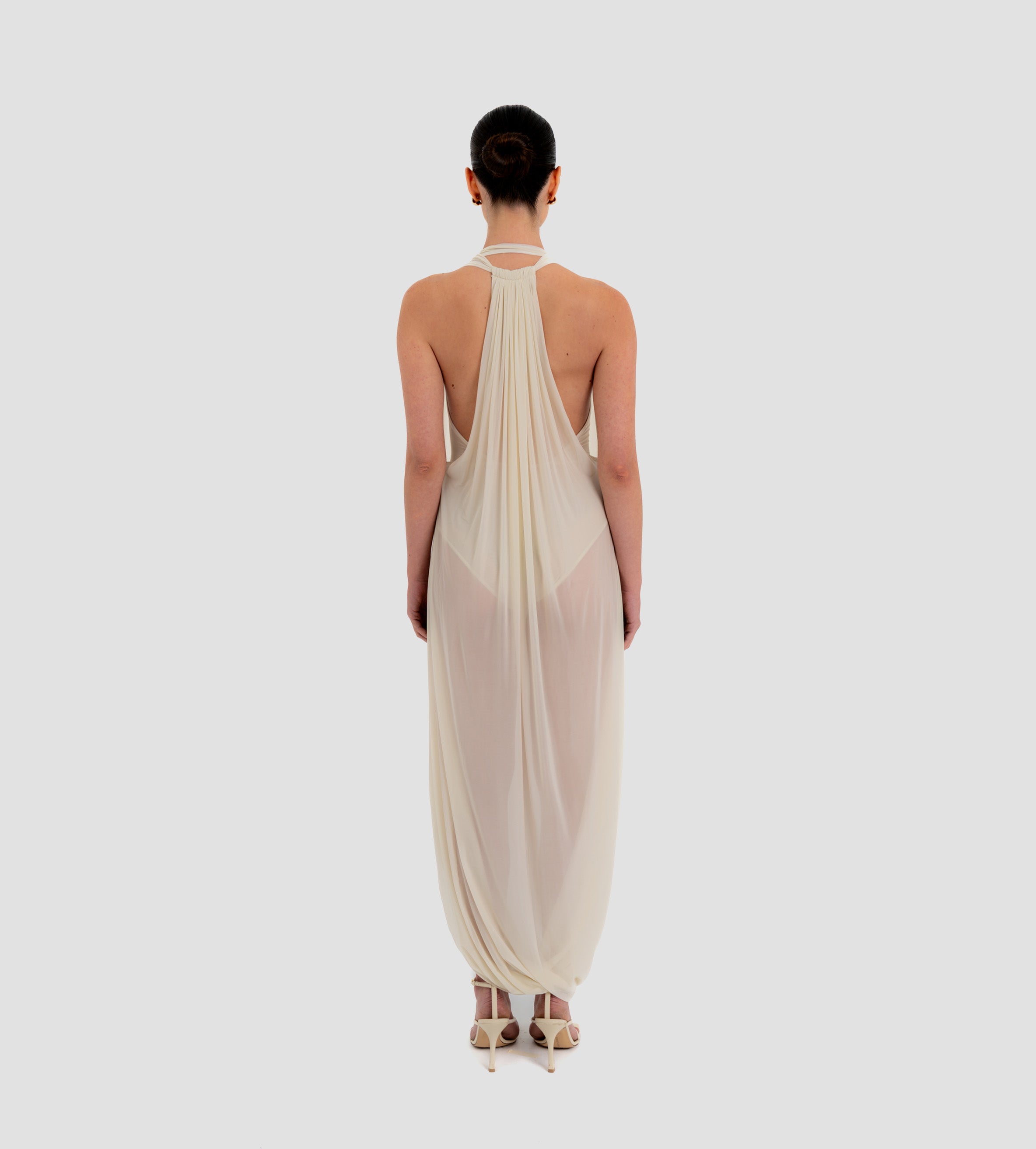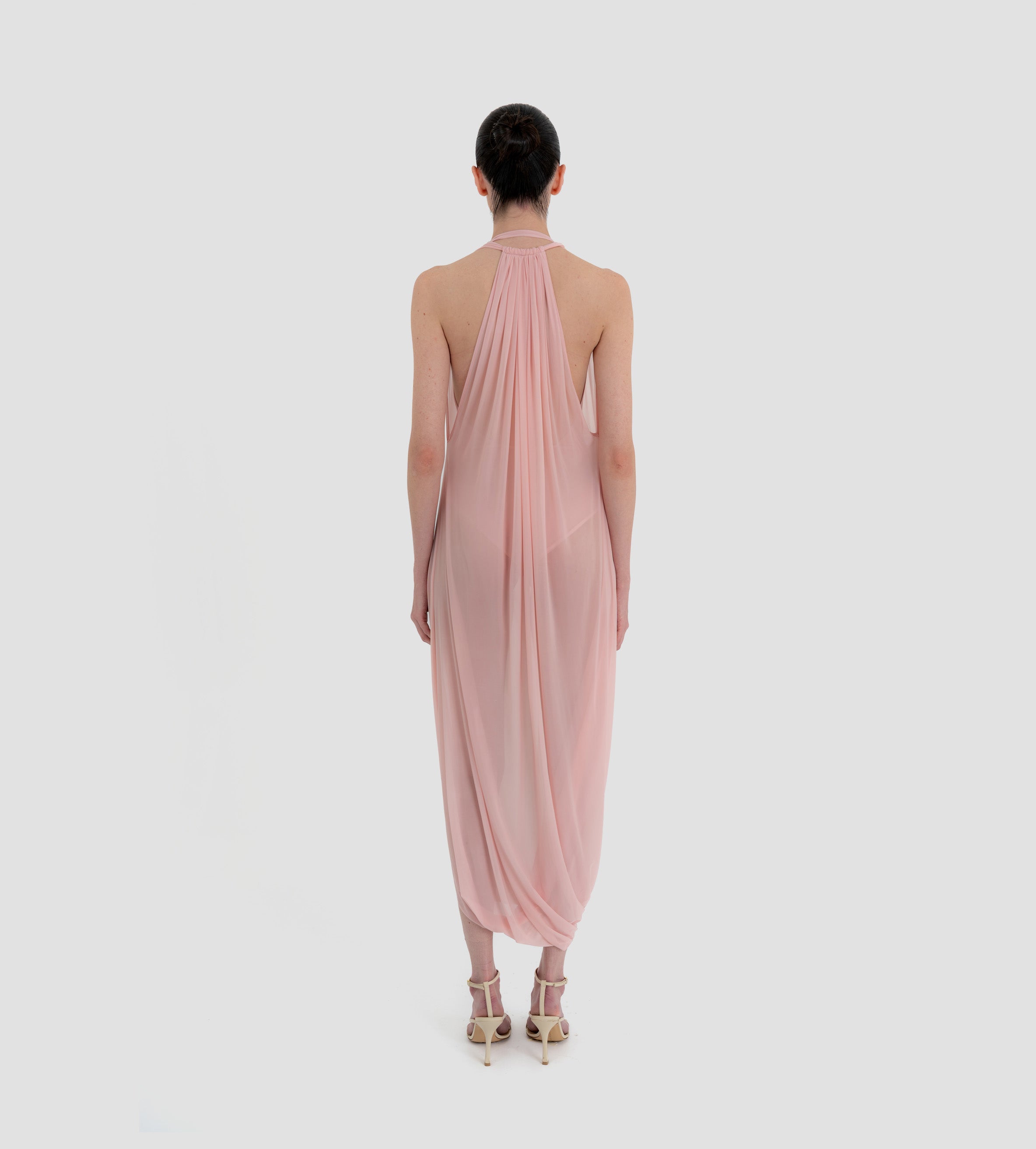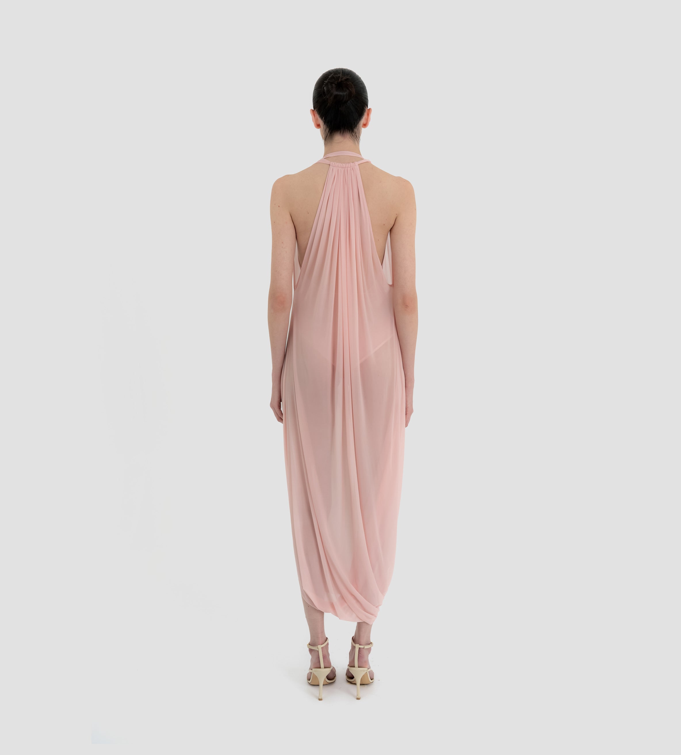 The Baru dress presents our new cupro fabric, defined by a deep cowl neckline and plunging armholes that open into a fluid, flowing silhouette. At the back, a tunnel construction gathers the fabric allowing it to cascade gracefully down the back for a soft, sensual effect.