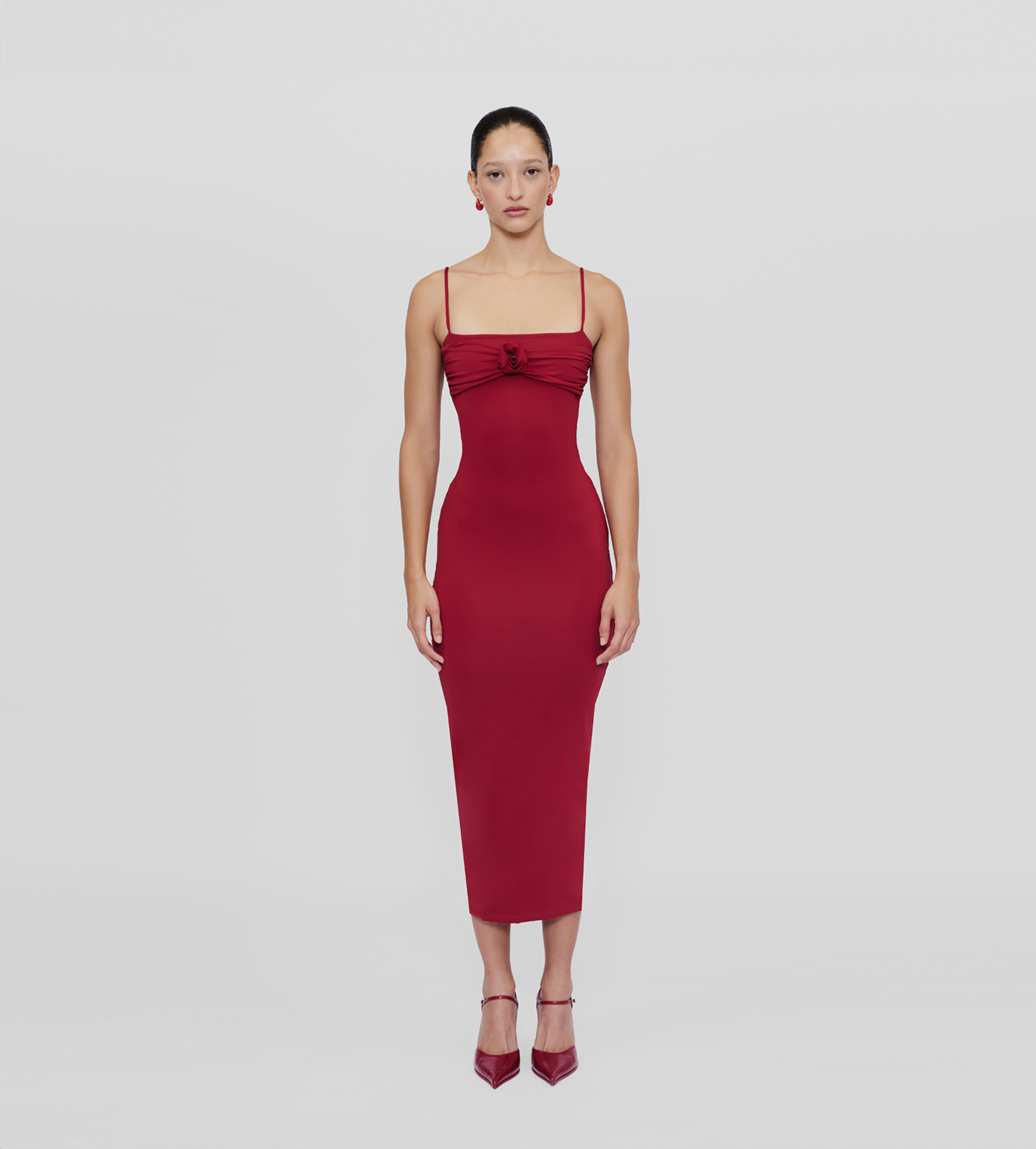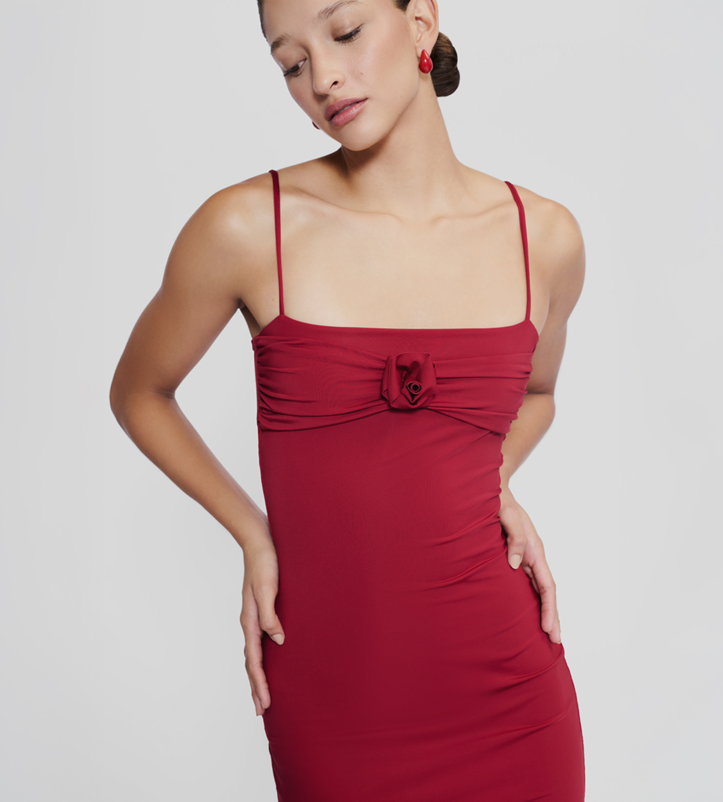 A must-have for the holidays, wrapped in timelessness. The Belen dress, in a vibrant and festive red, reflects the spirit of the season with its elegant silhouette and refined details. The delicate thin straps and gathered bodice, adorned with a handmade rose, convey a natural sophistication. Ideal for celebrating unforgettable evenings with an aura of confidence and grace.