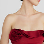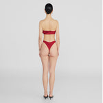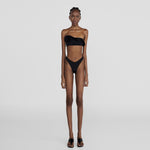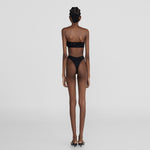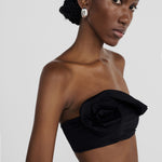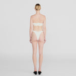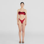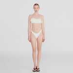 The Bies two-piece showcases a bandeau top, adorned with an asymmetric ruffle that blooms into a delicate 3D floral side detail, paired with a high-leg, seamless fit, clean-cut bottom that elongates the figure.