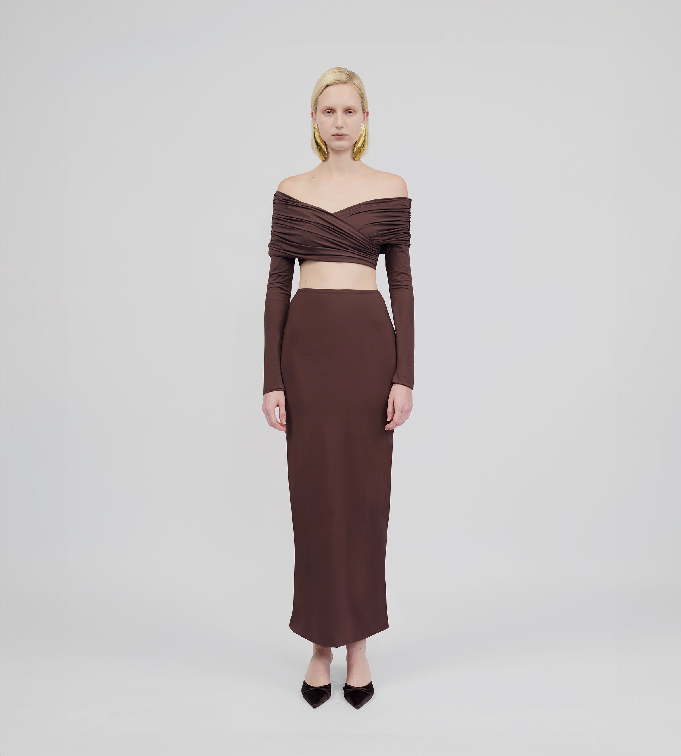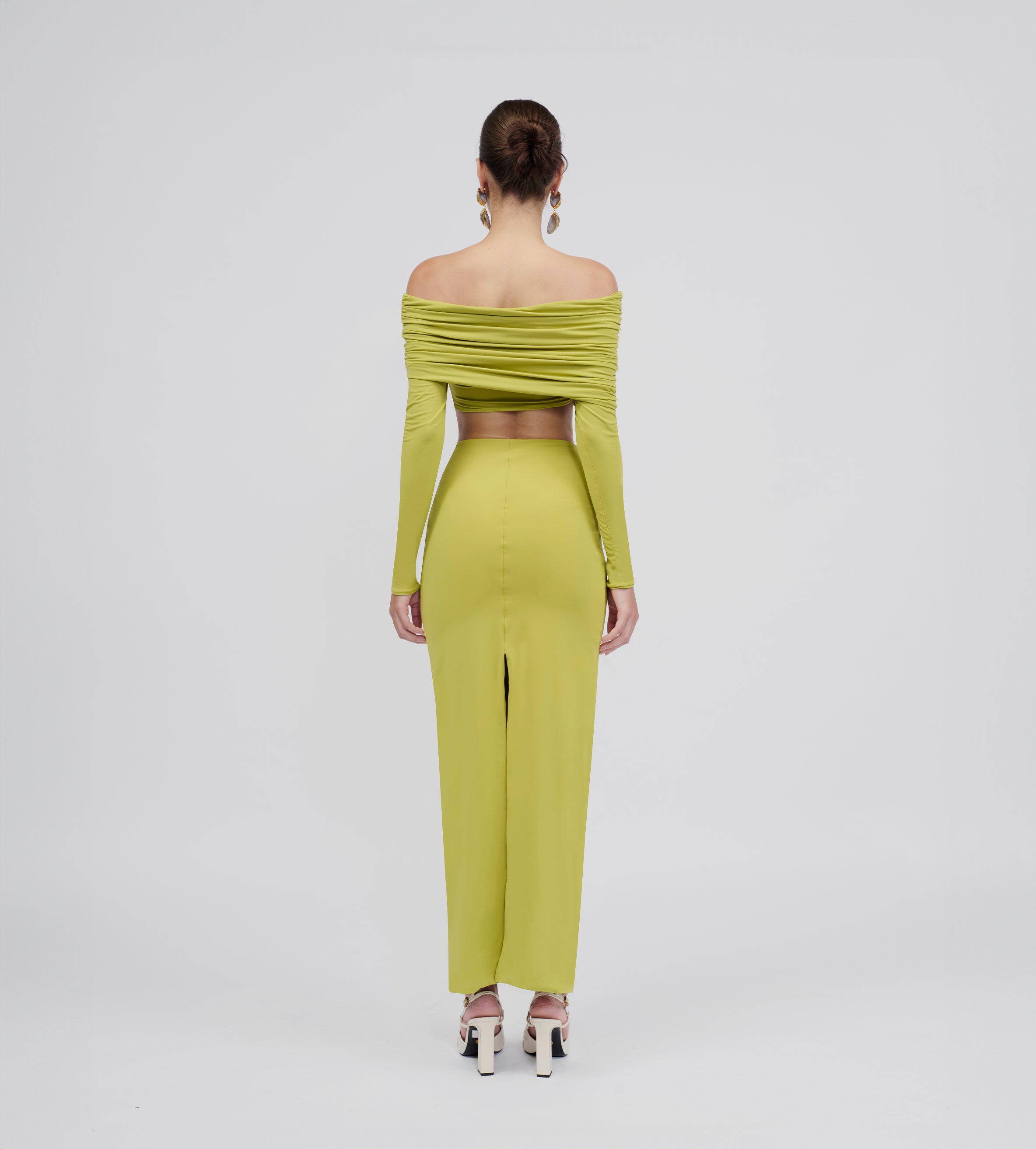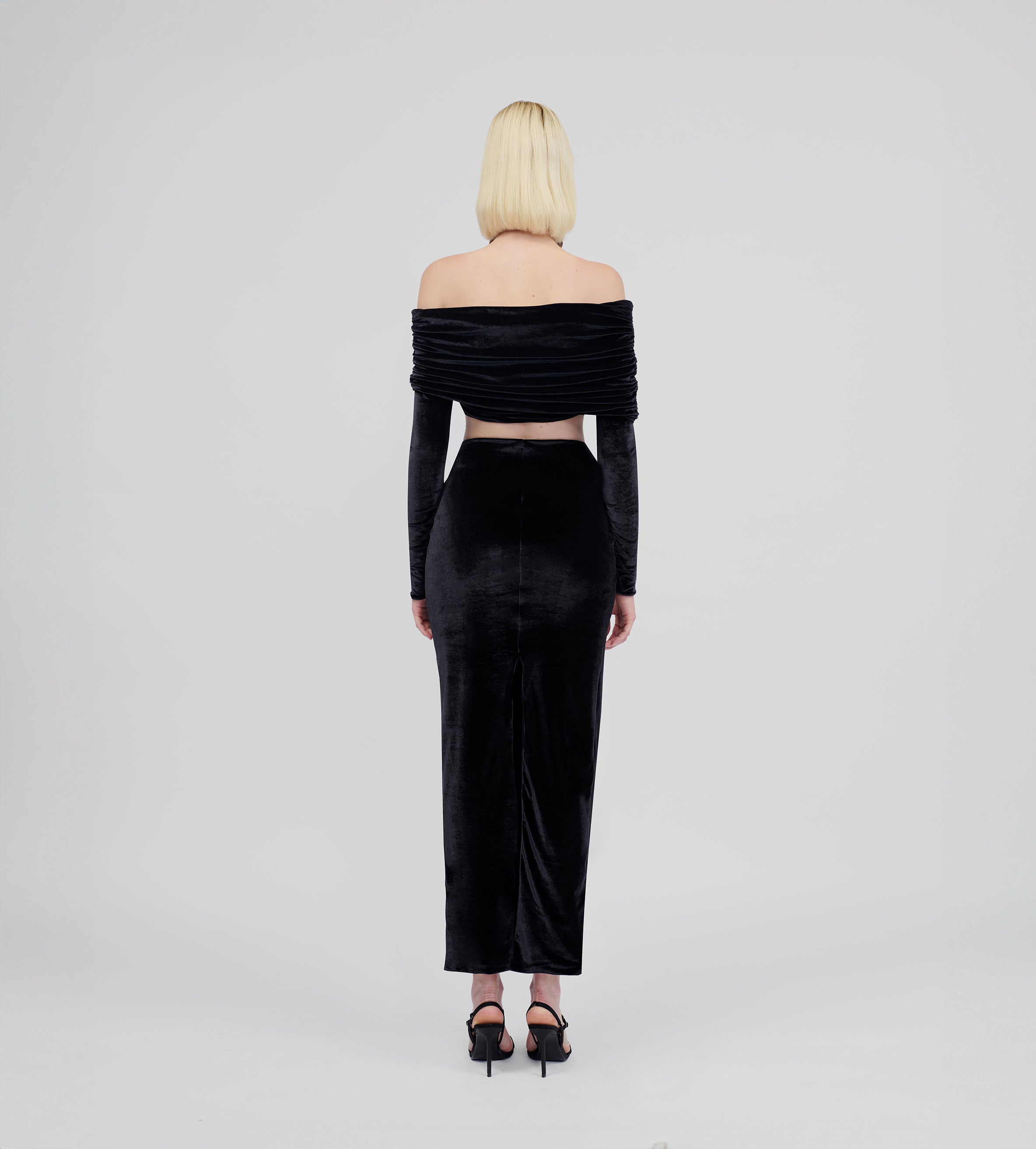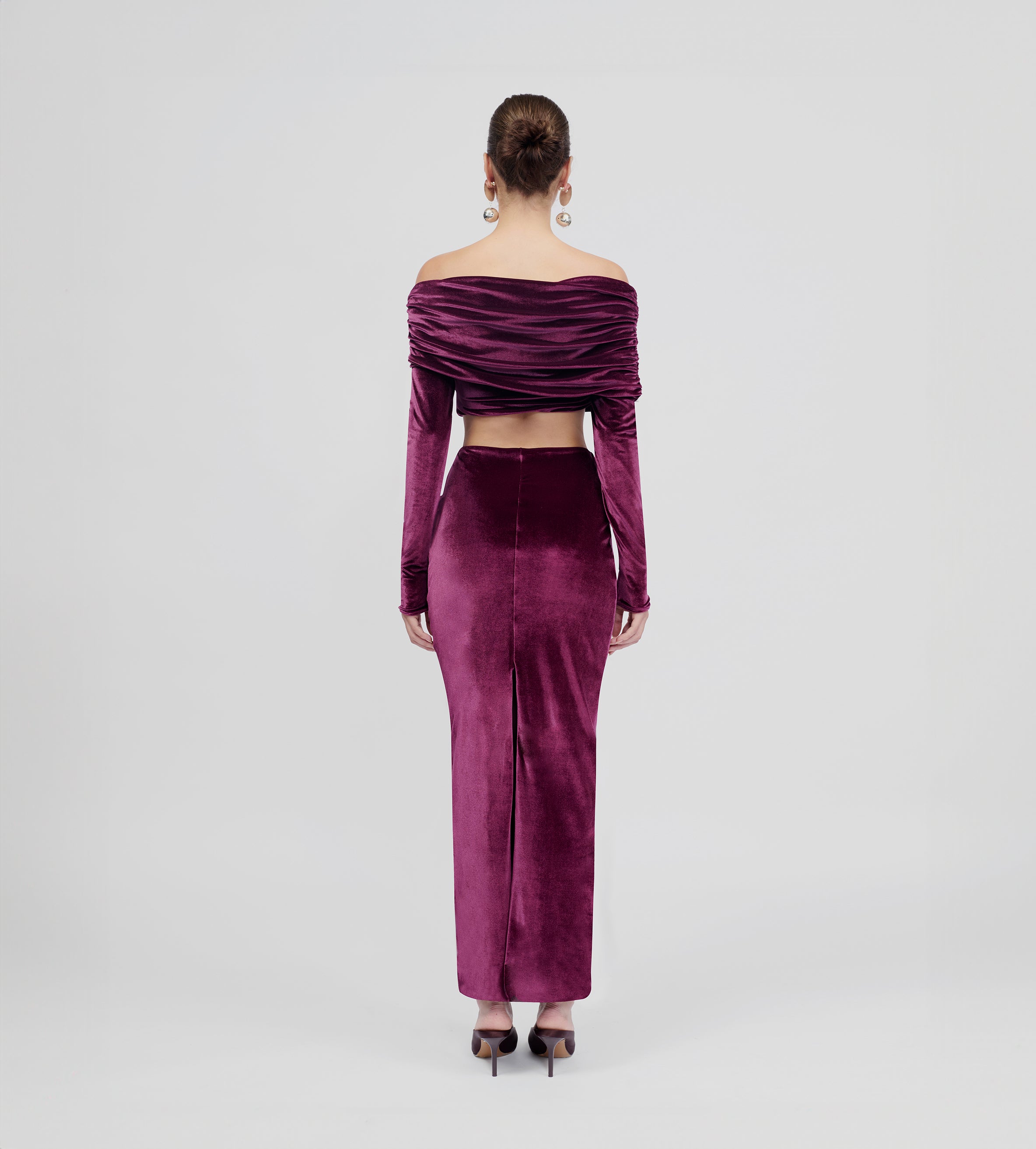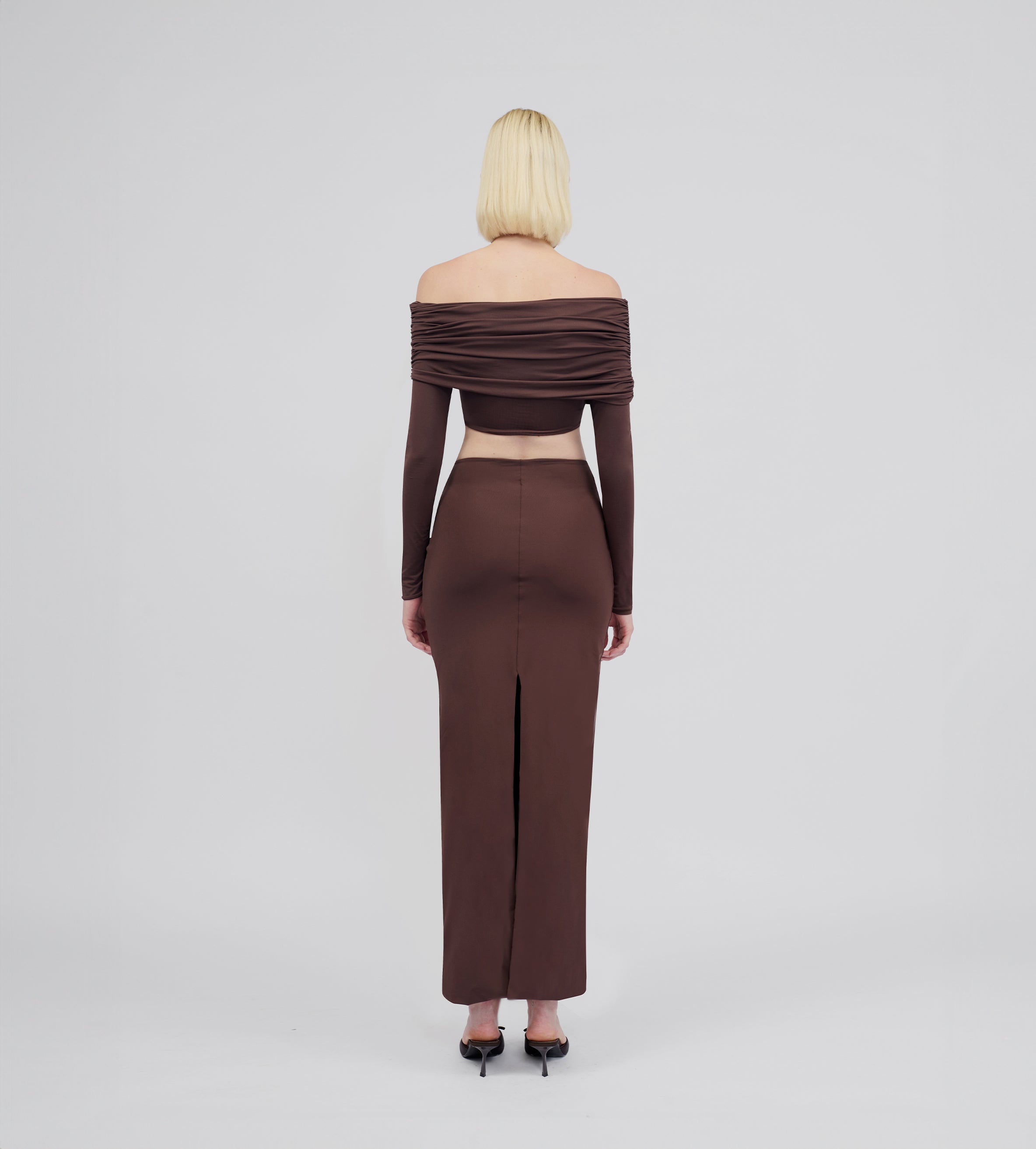 Super high-waisted long column skirt— the perfect complement for dancing the night away. For an ideal day-to-night look, choose our oasis green and brown variations in our signature stretch fabric, or dare to explore something new with our new knitted mellow velvet fabric in plum and nightfall.
