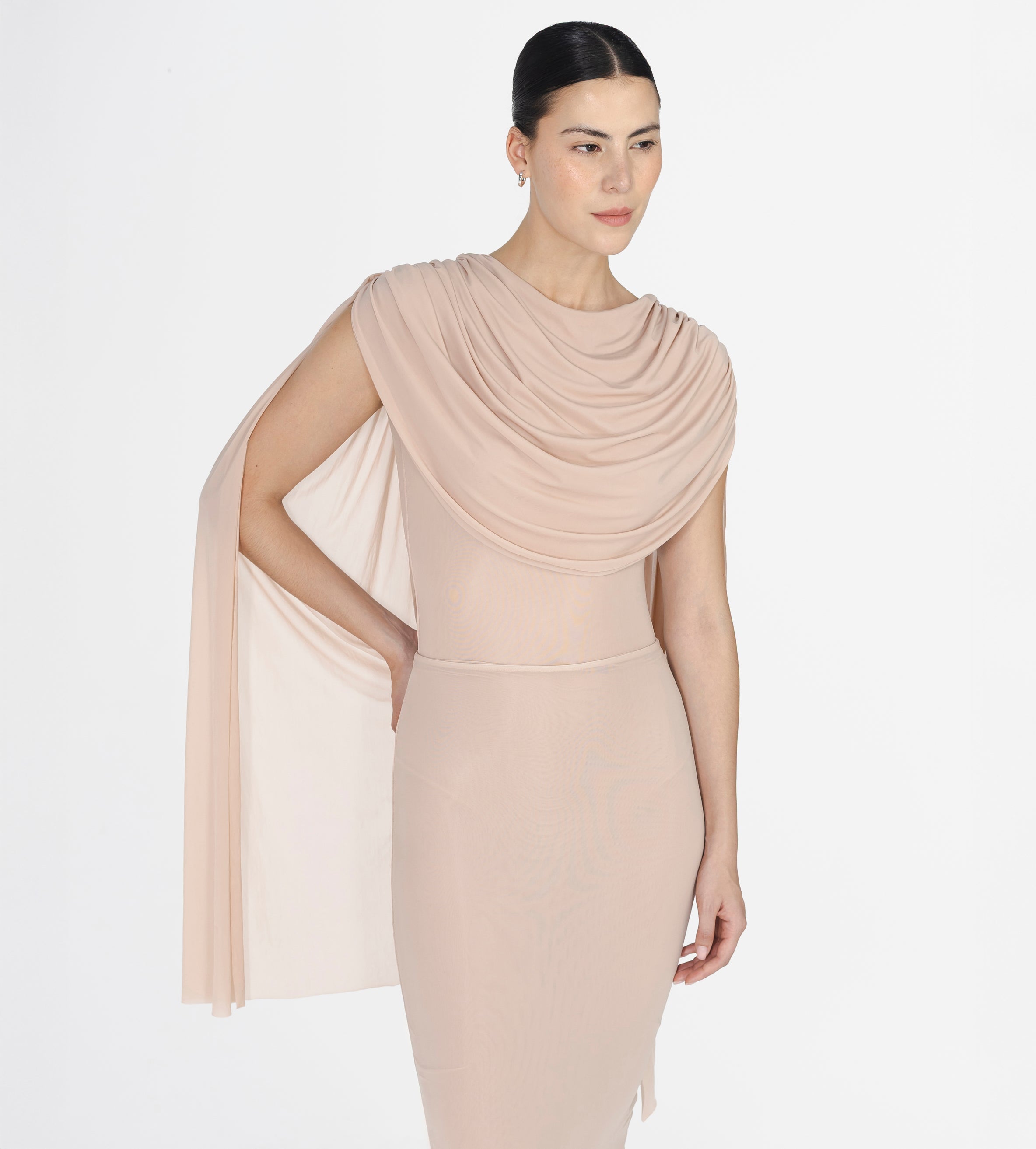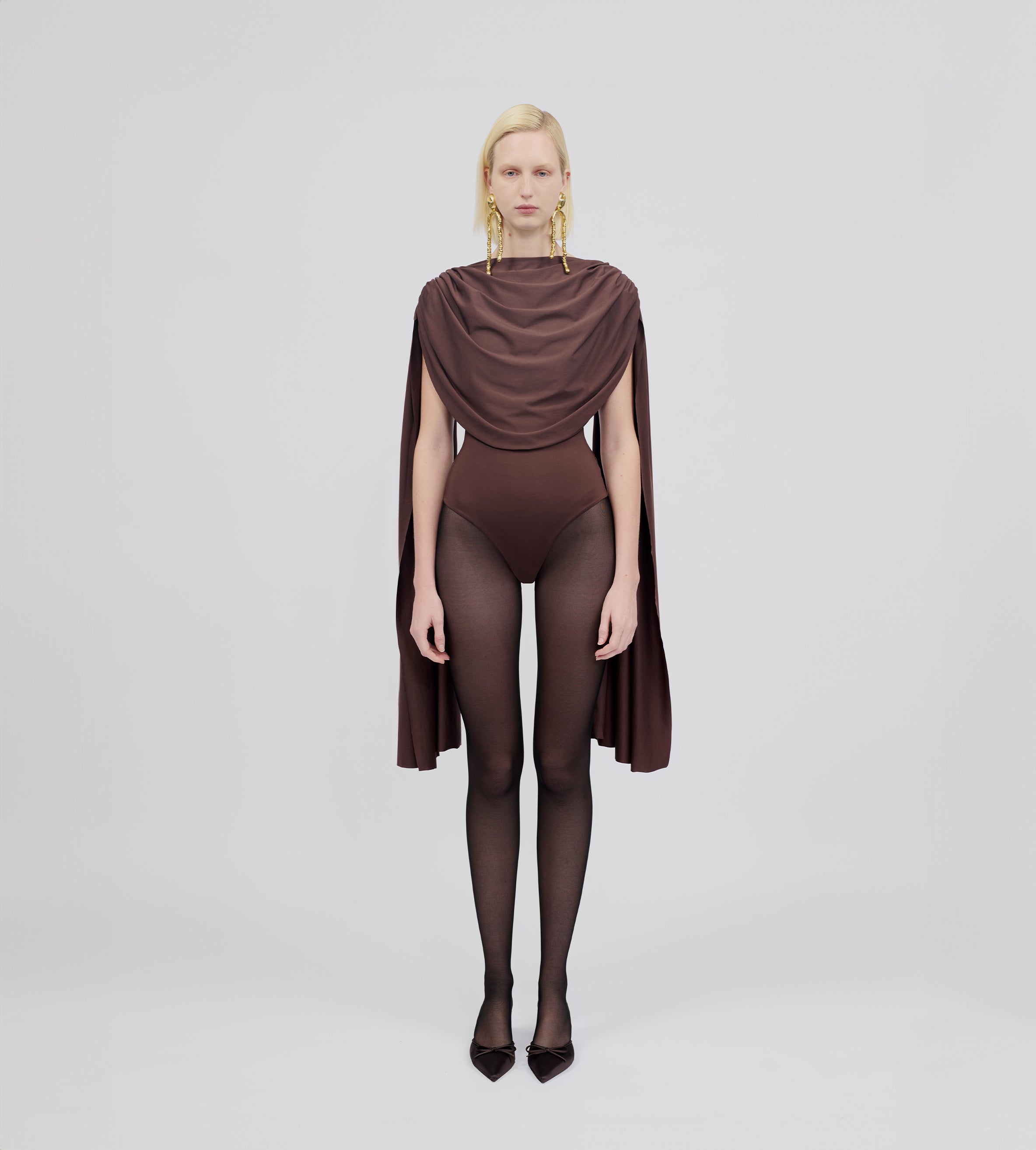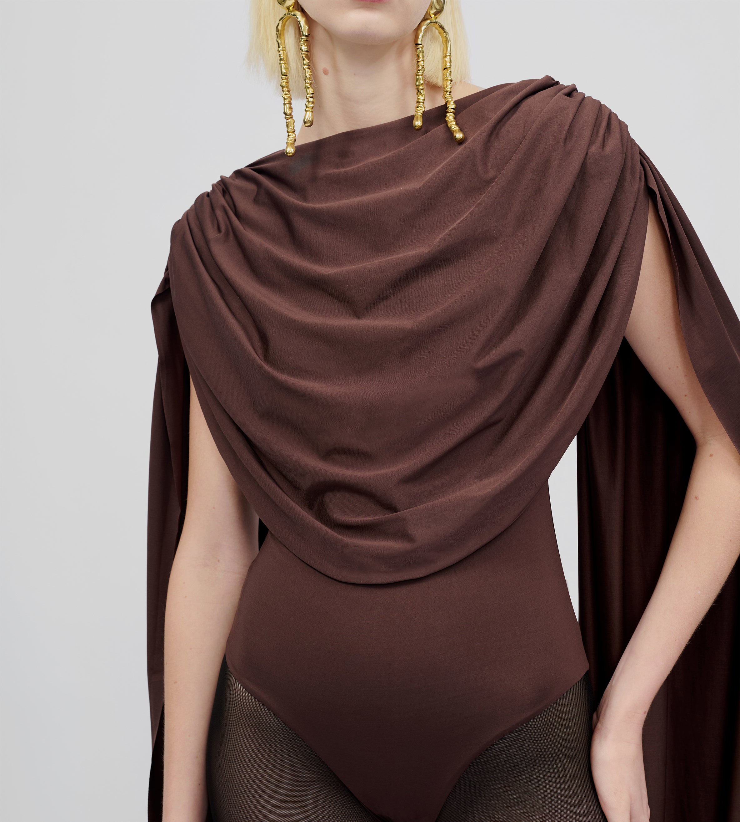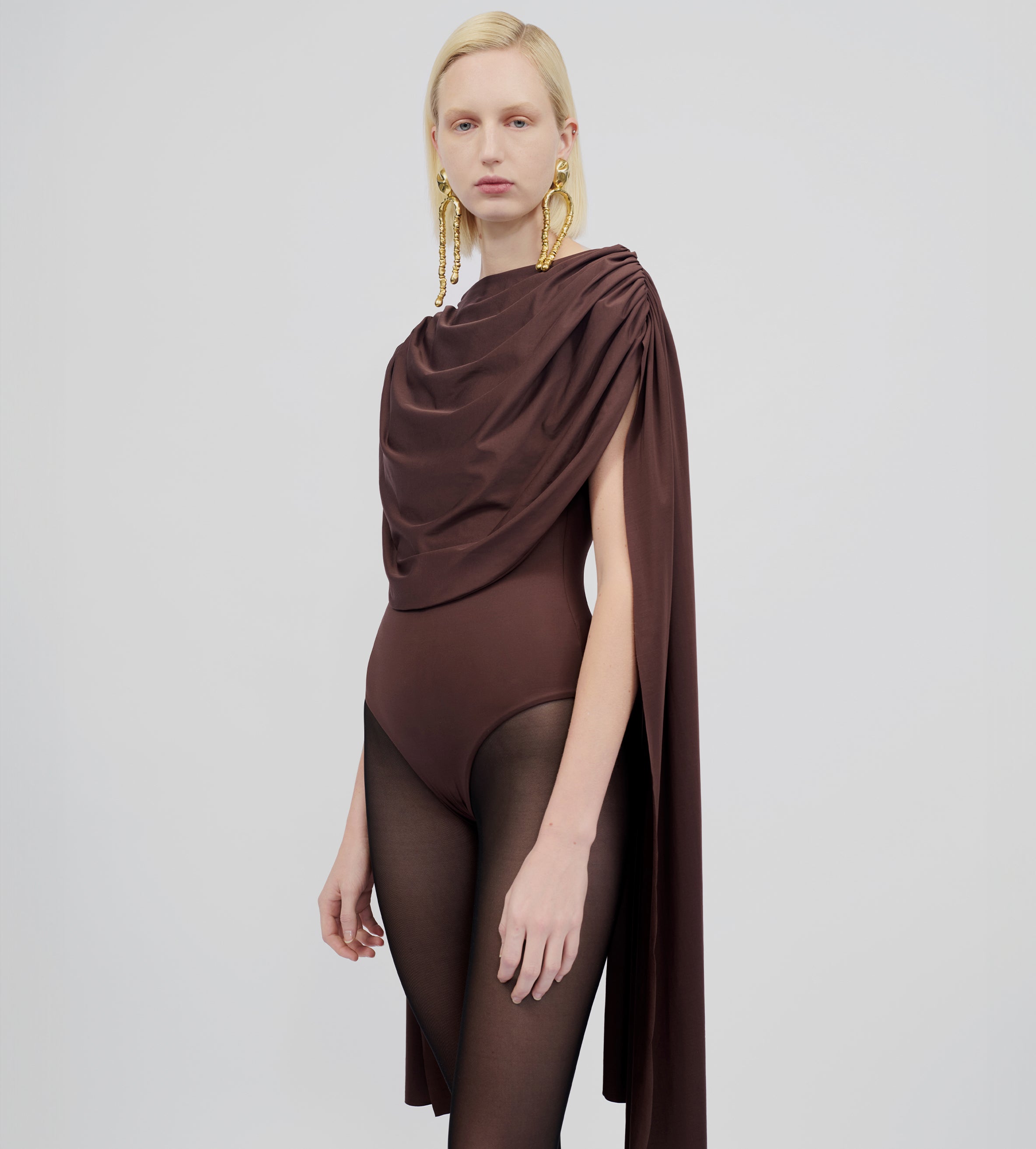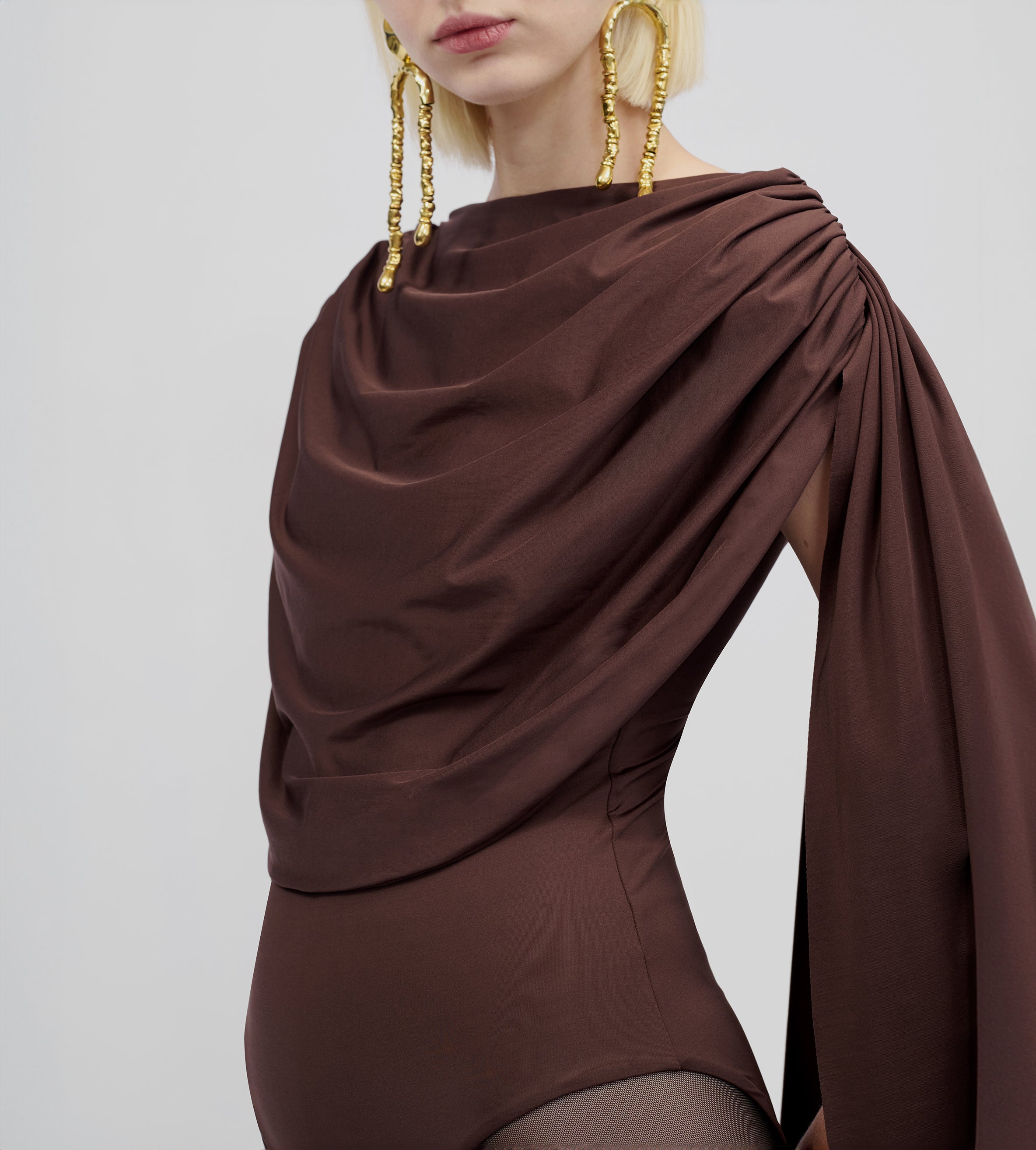 Charming and adaptable, our Burano one-piece showcases the delightful versatility of our design aesthetic. Featuring a cowl draped scoop neckline and a deep, round open back, this piece allows you to unleash your creativity and explore various styling options. Complemented by draped shoulder sashes, it invites you to let your imagination soar and reveal your favorite way to wear it!