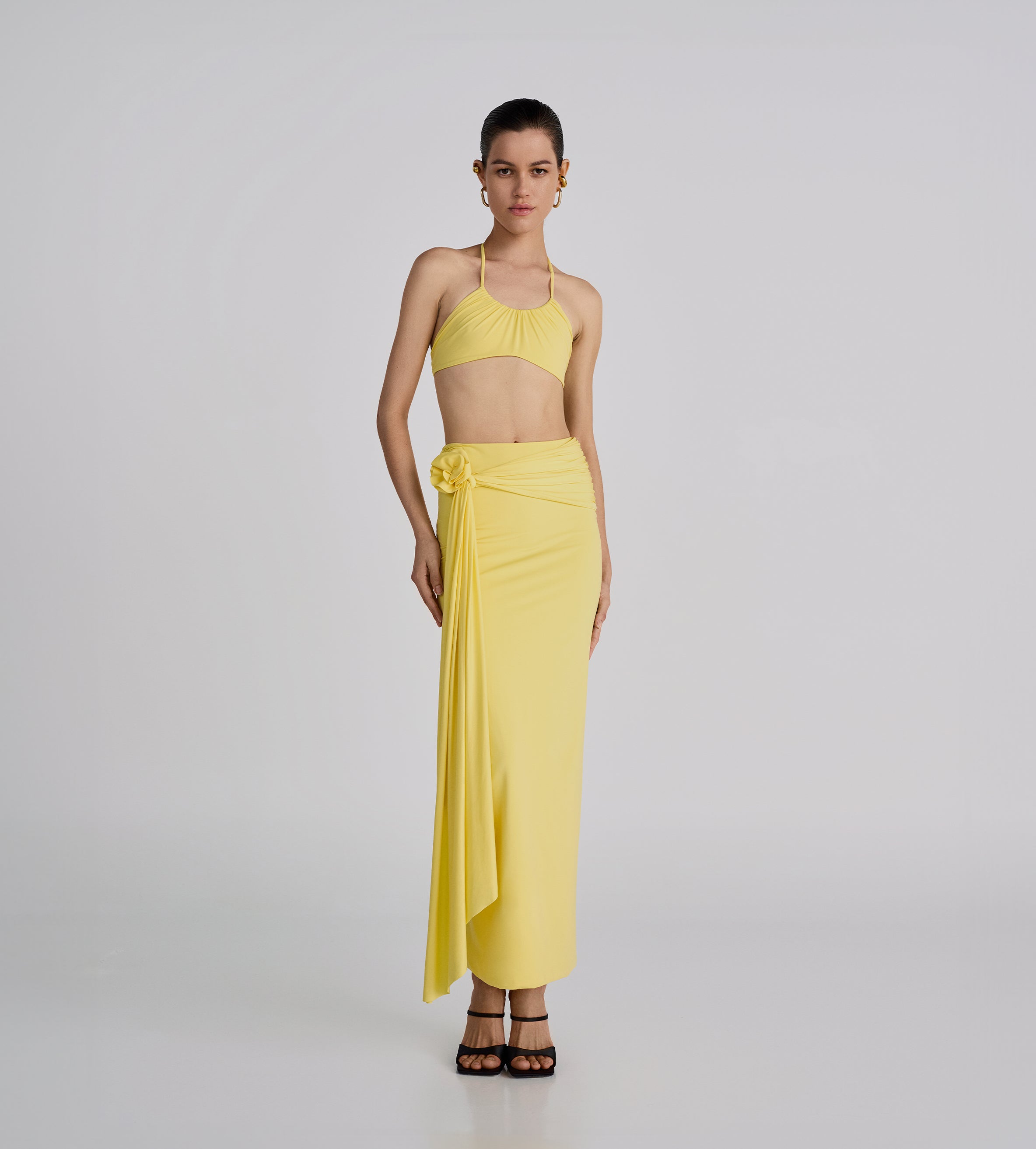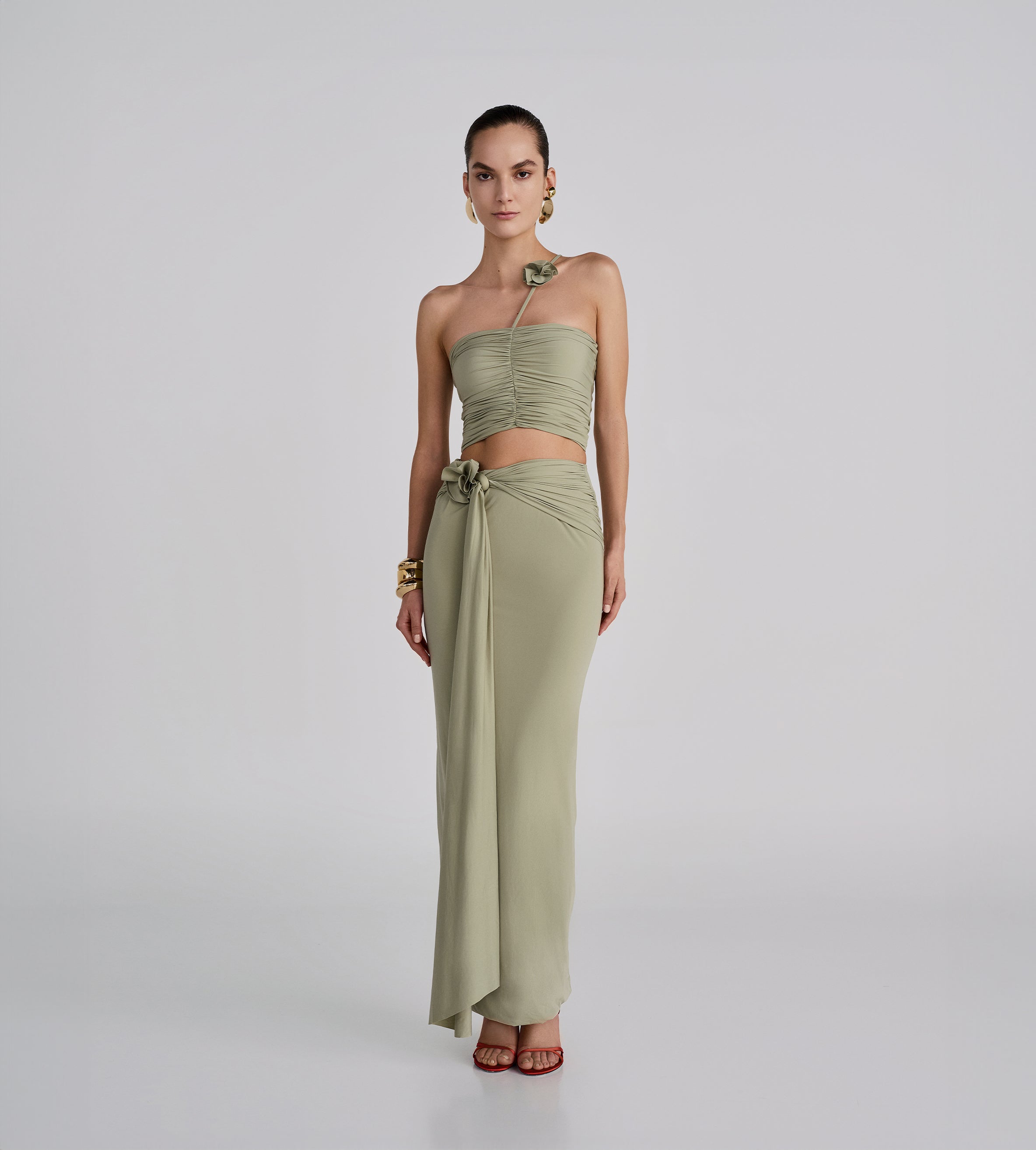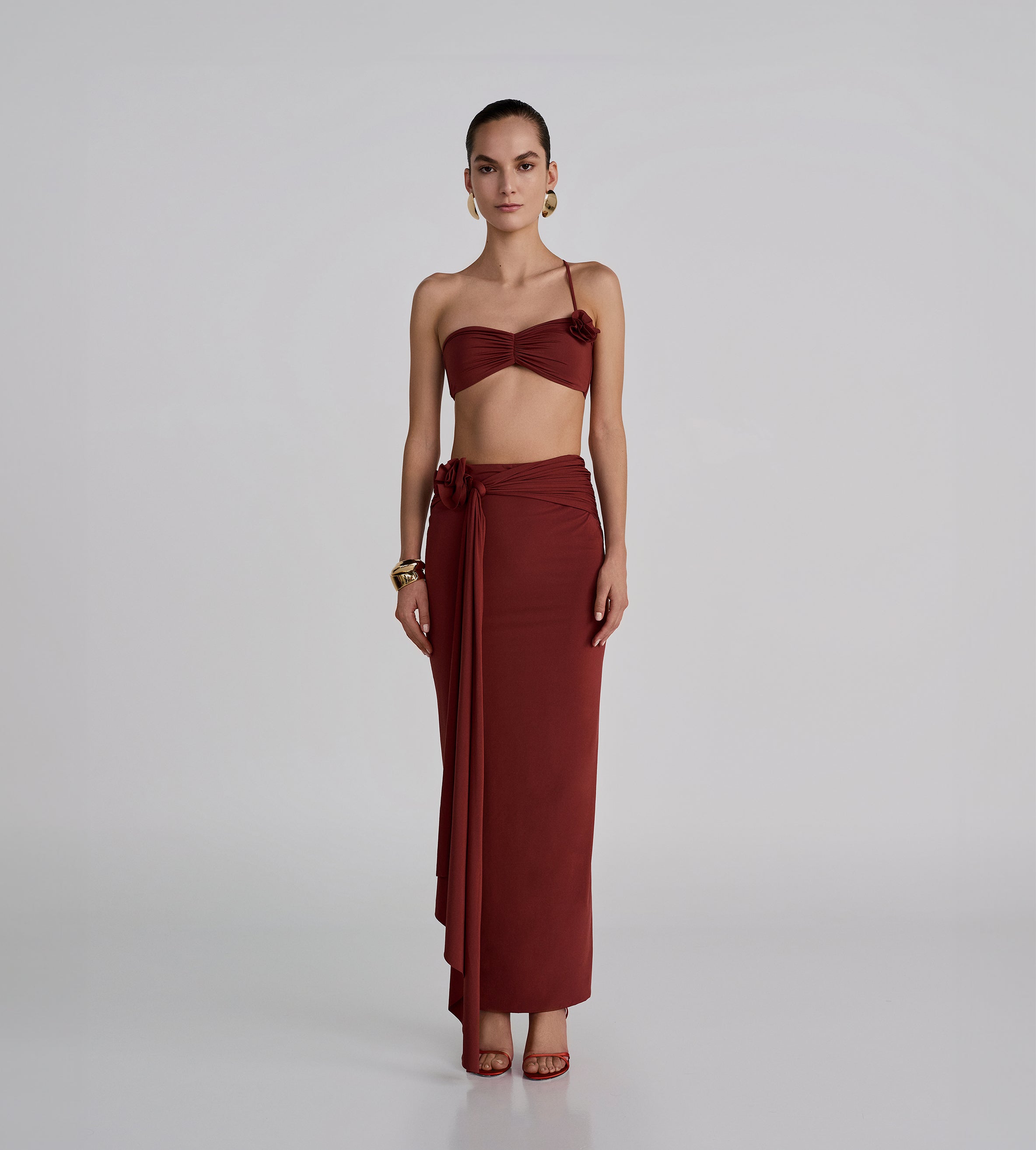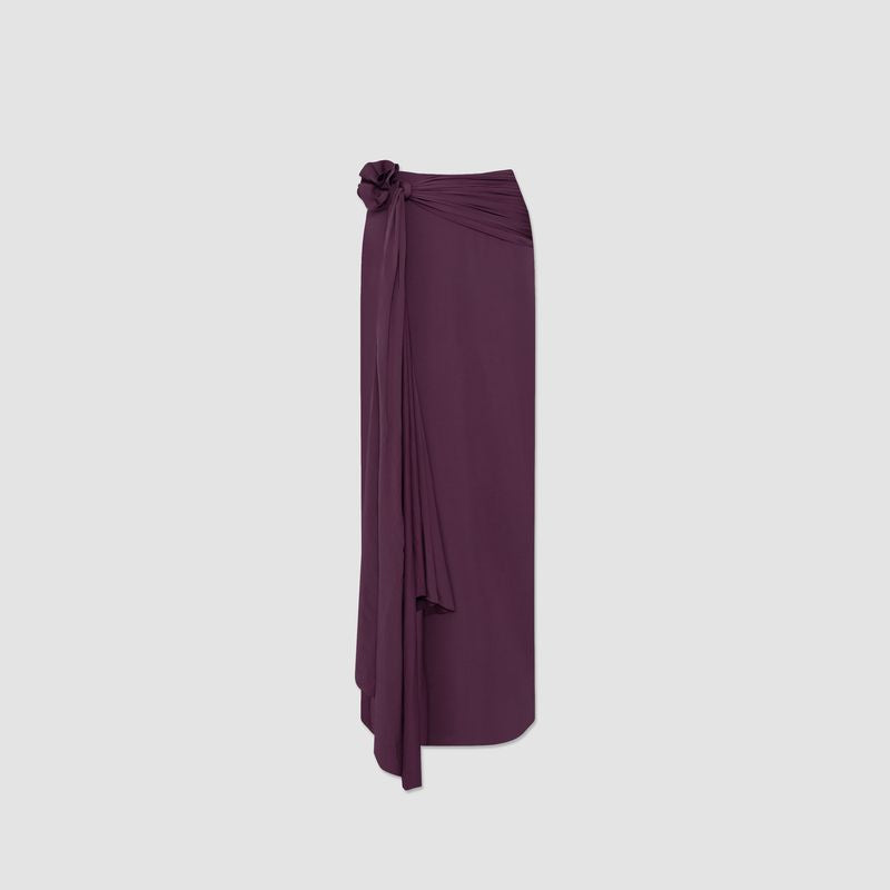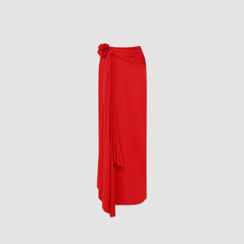 Maxi fitted skirt, with an adjustable sash detail at the front that merges with our 3D blossoming iconic flower, an effortless and sophisticated design.