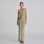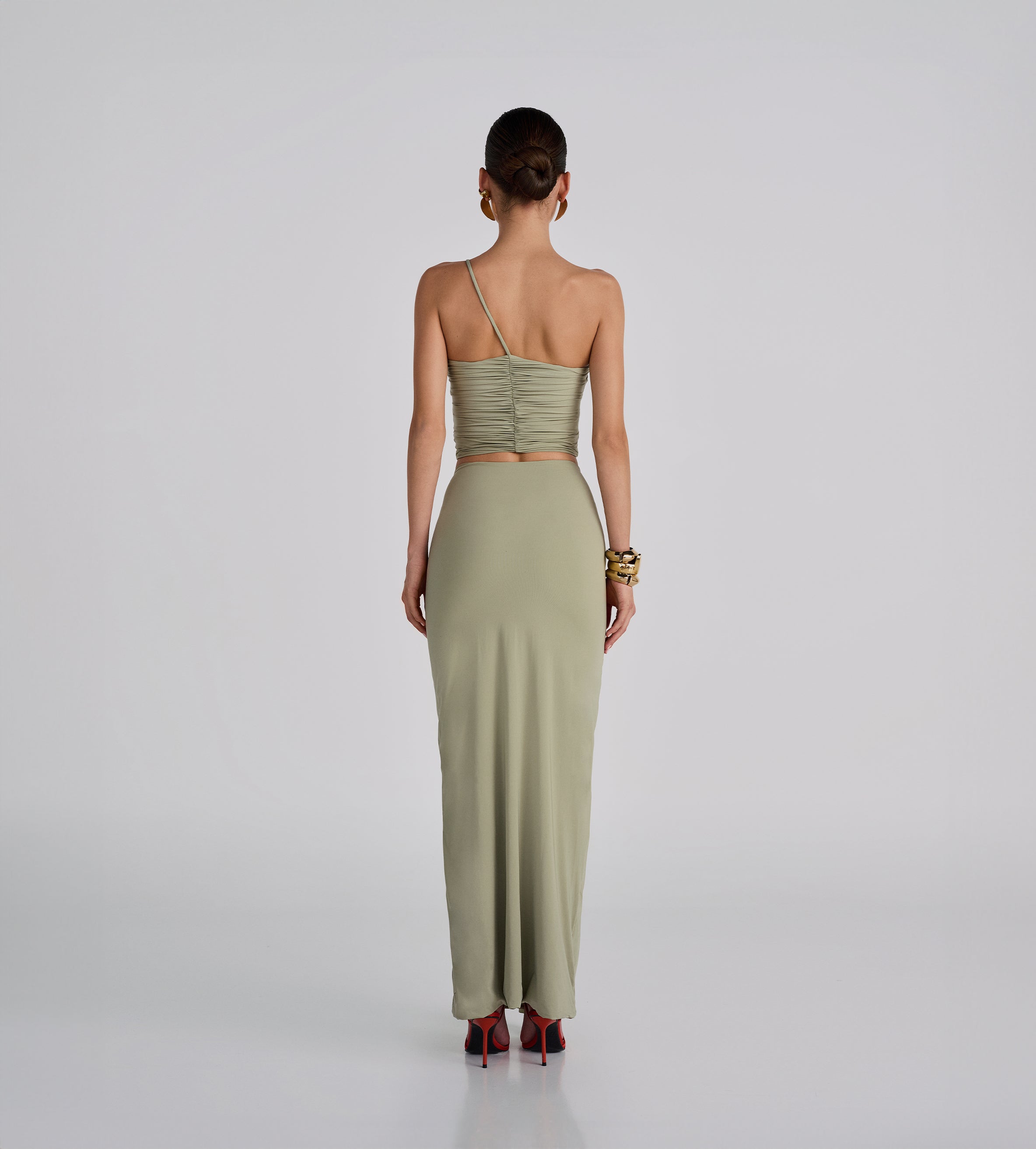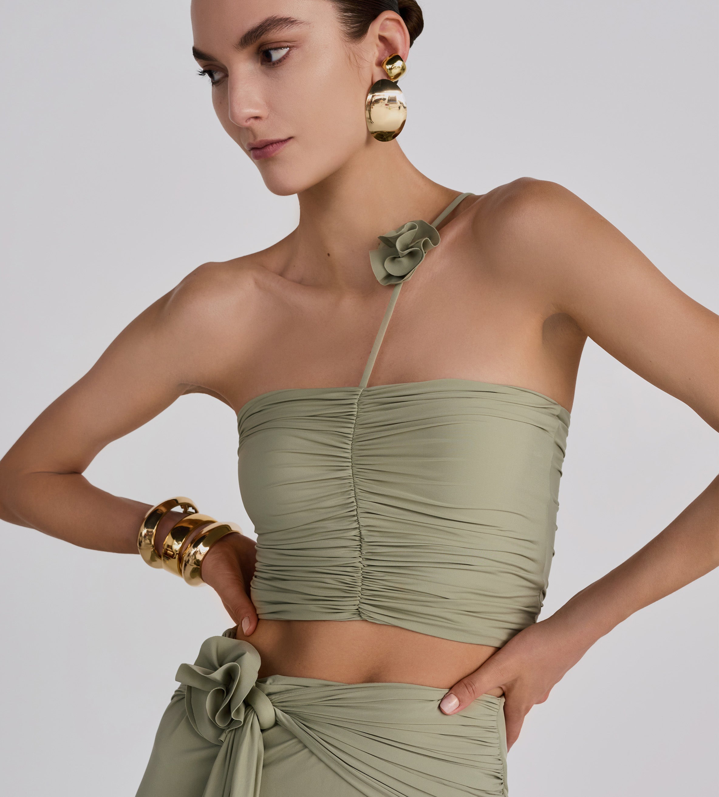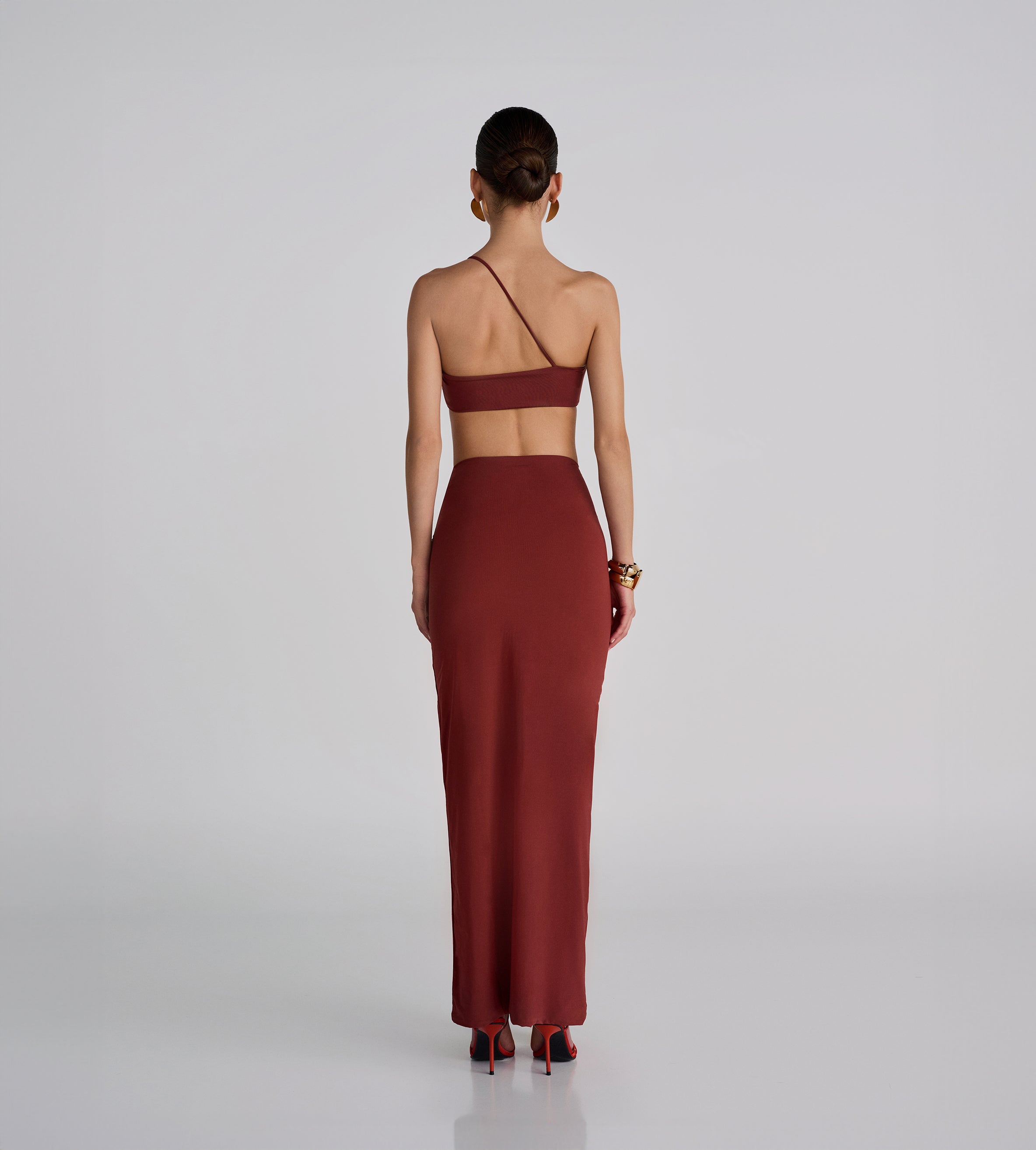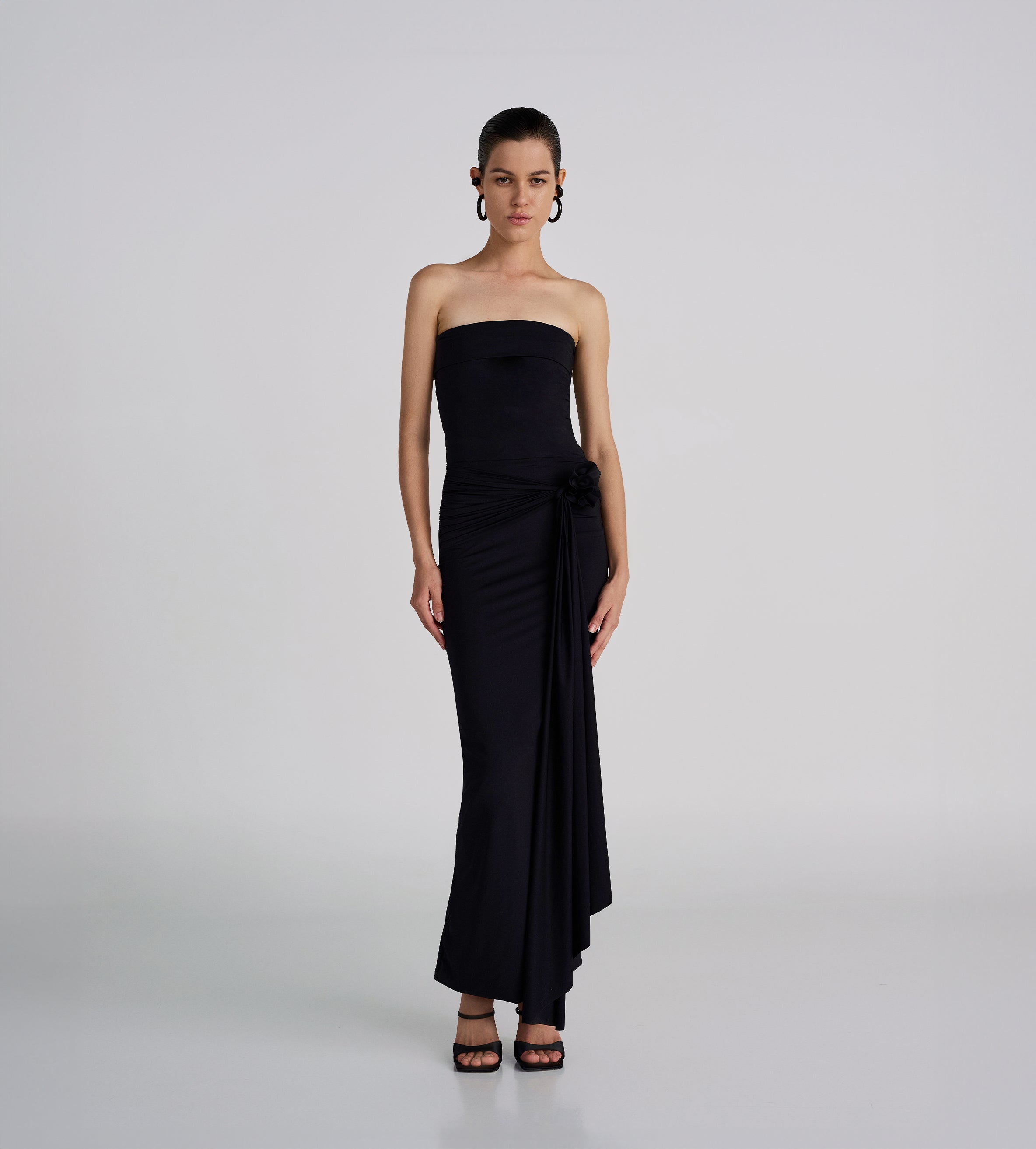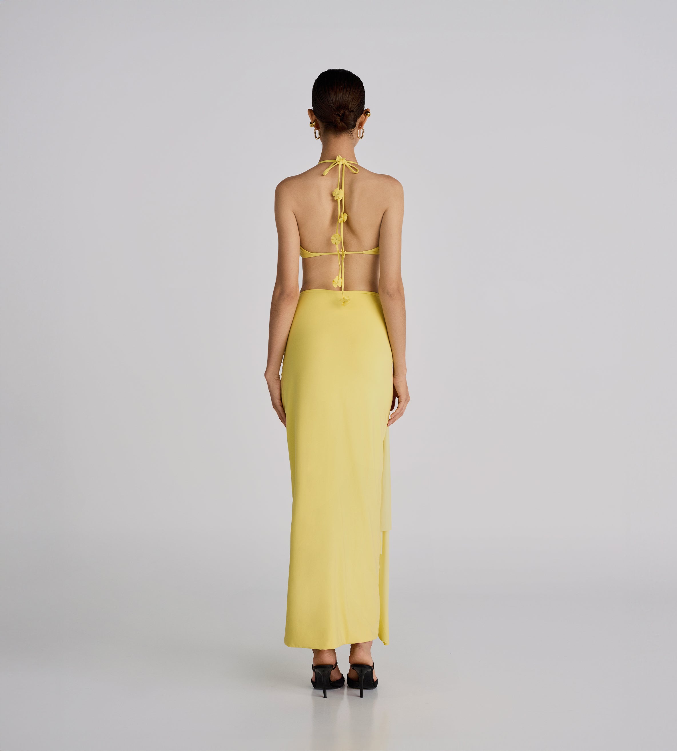 Maxi fitted skirt, with an adjustable sash detail at the front that merges with our 3D blossoming iconic flower, an effortless and sophisticated design.
