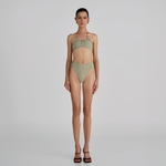 Our Delphi two-piece features a scoop neckline top with thin straps adorned with mini 3D handmade flowers, complemented by an alluring open back. Paired with high-rise, mid-coverage briefs crafting a romantic and dynamic combination