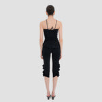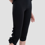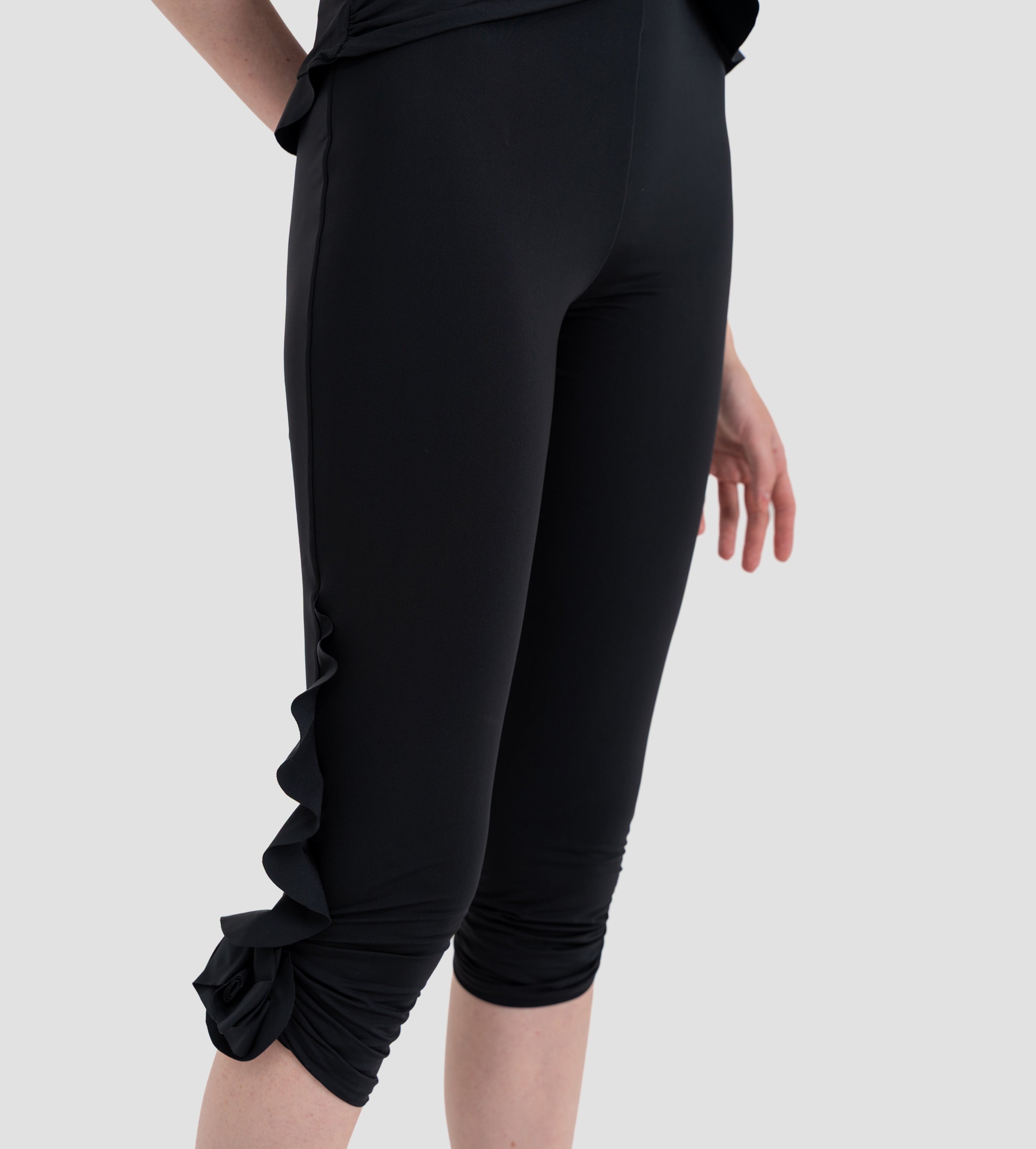 The Esme capri features a mid-rise fit with soft side ruffles that enhances this elevated design.
