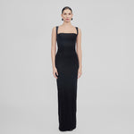 The Hibisco dress seamlessly blends our two iconic fabrics. It features an alluring square neckline, framed by wide straps that contour into a flattering bandeau shape over the bust. The form-fitting silhouette flows effortlessly into a sleek column skirt, while a signature lateral 3D floral detail adds the perfect finishing touch. A semi-transparent, dramatic back elevates the design with an added touch of sophistication.