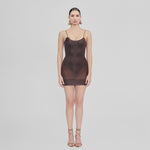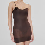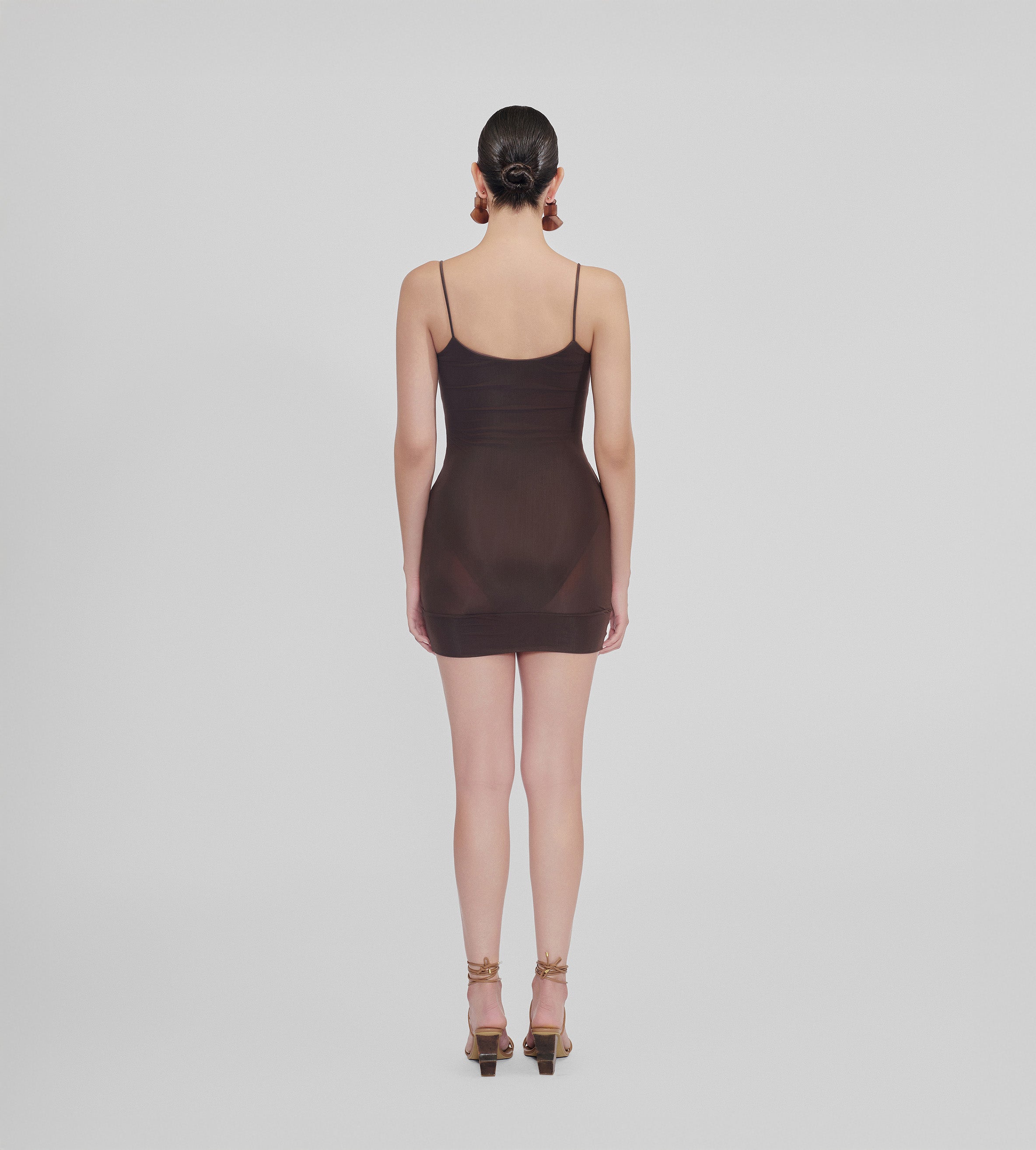 The Jacinto mini dress features a flattering scoop neckline with delicate, slim straps, offering a graceful, feminine touch. Expertly crafted from our semi-transparent lycra, it is enhanced with a blended internal body that creates a seamless silhouette with a figure-enhancing fit.