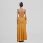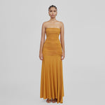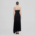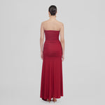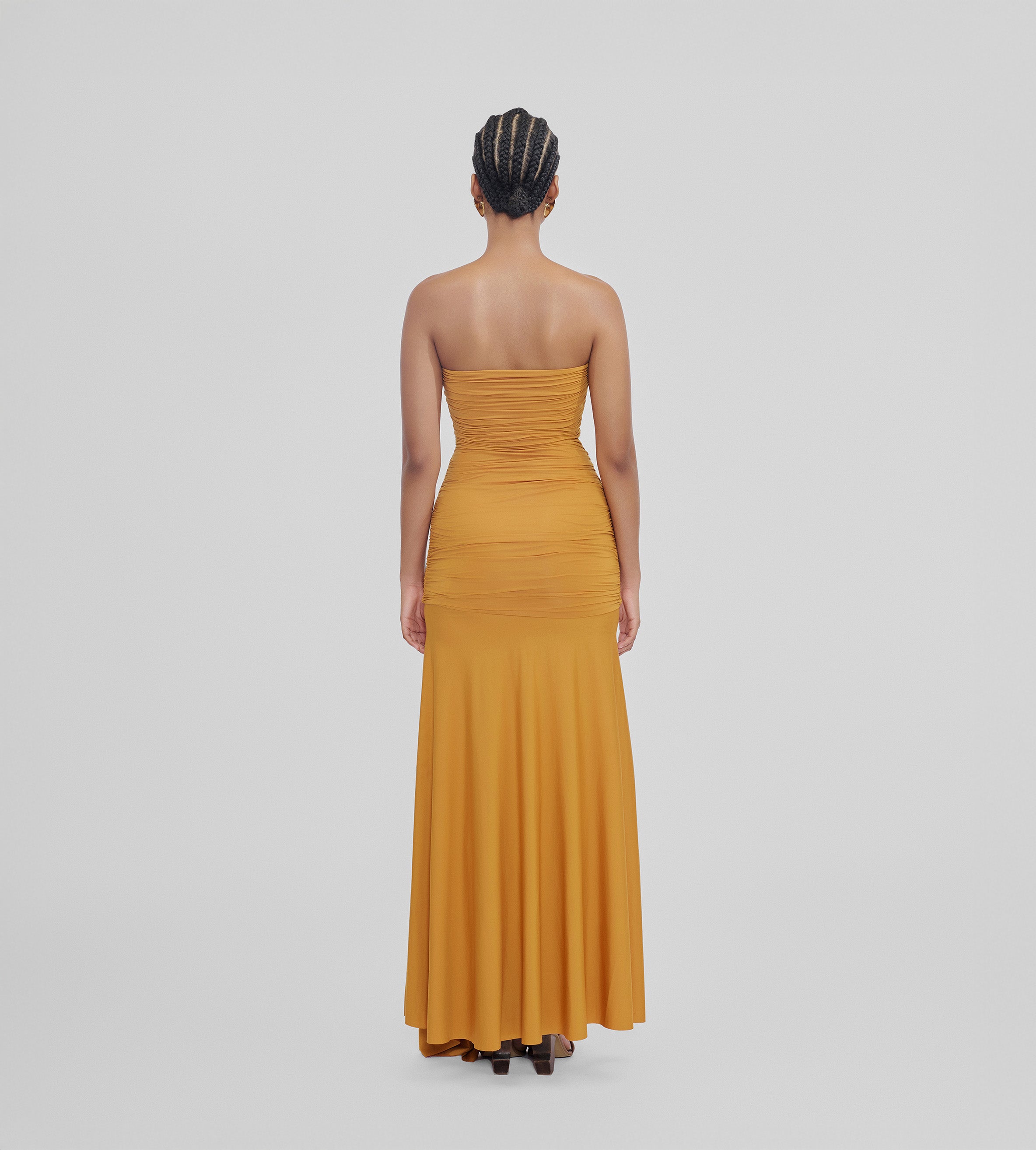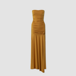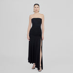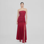 The Lemaitre long dress features a strapless heart-shaped neckline, this design flows effortlessly with a soft draped bodice that gently hugs the body. The long, wide, flouncy skirt is beautifully complemented by a slit at the front and a stunning handmade 3D flower detail, all crafted from our iconic stretch Lycra for a flawless fit and ultimate comfort.
