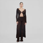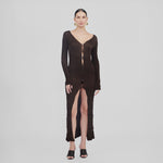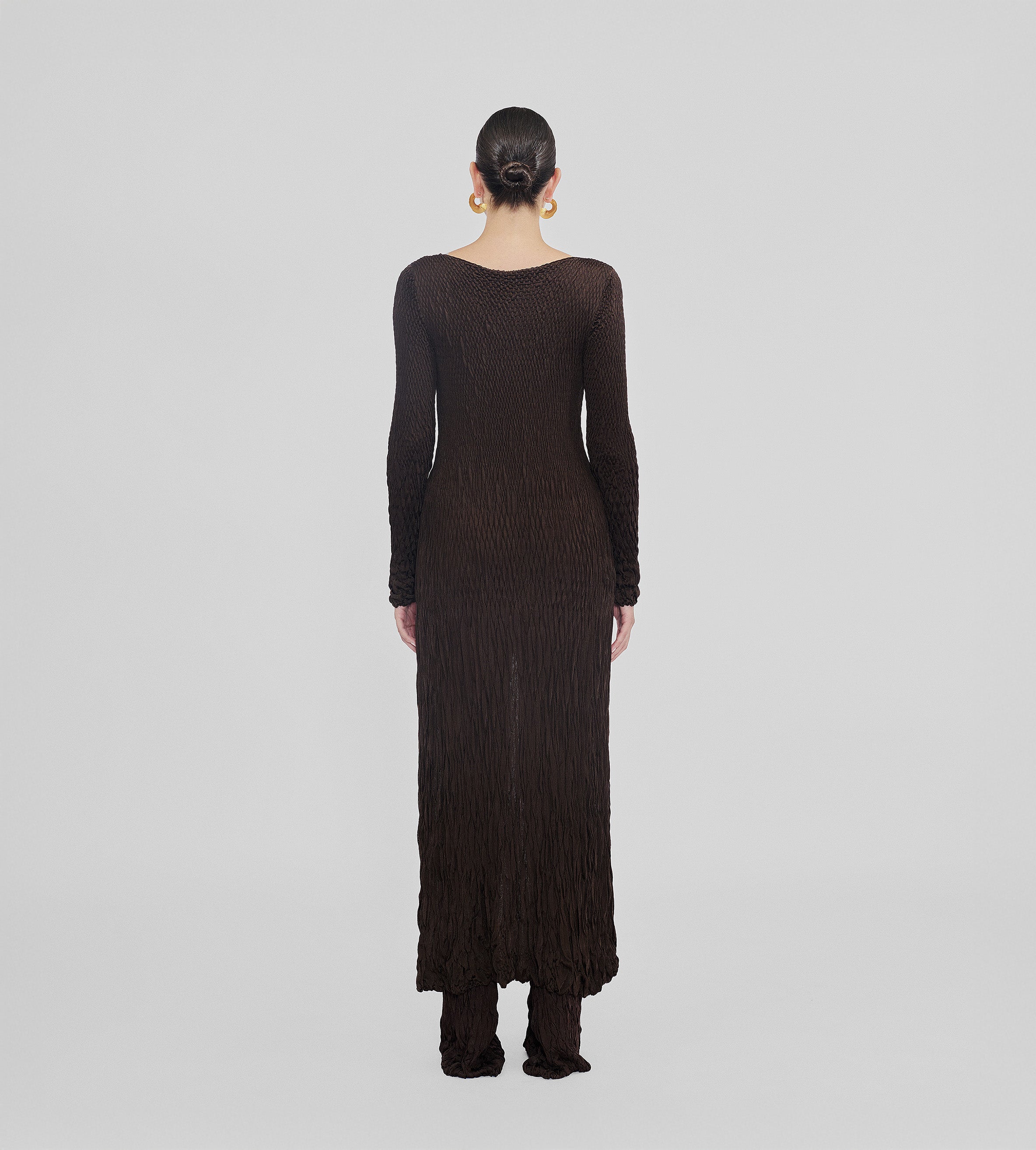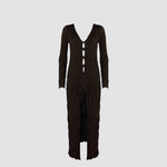 Long, fitted cardigan featuring a deep V-neckline, long sleek sleeves and a front opening that highlights the versatile styling options of this modern design. A fresh silhouette crafted from our new textured knit fabric, offering endless possibilities.