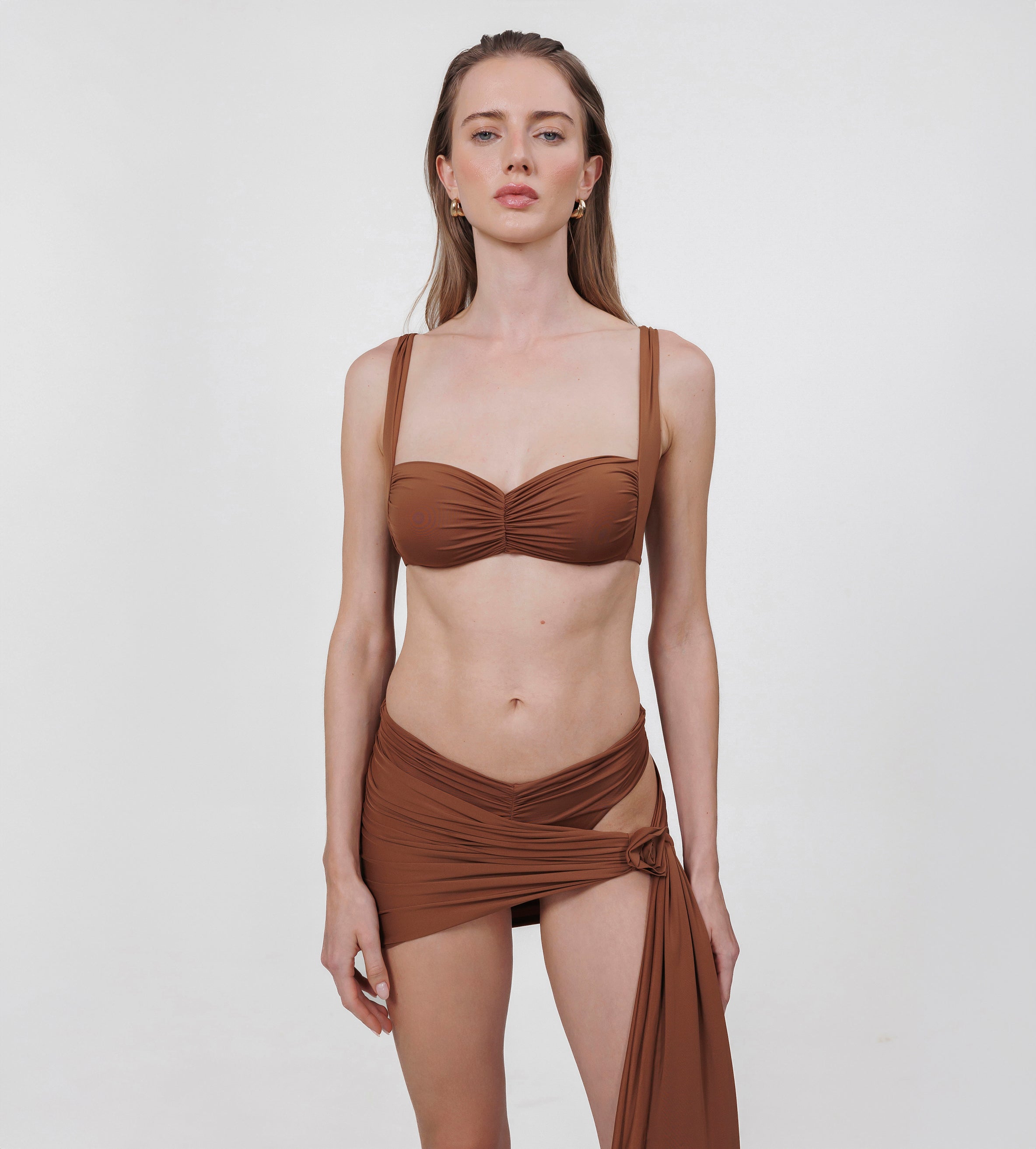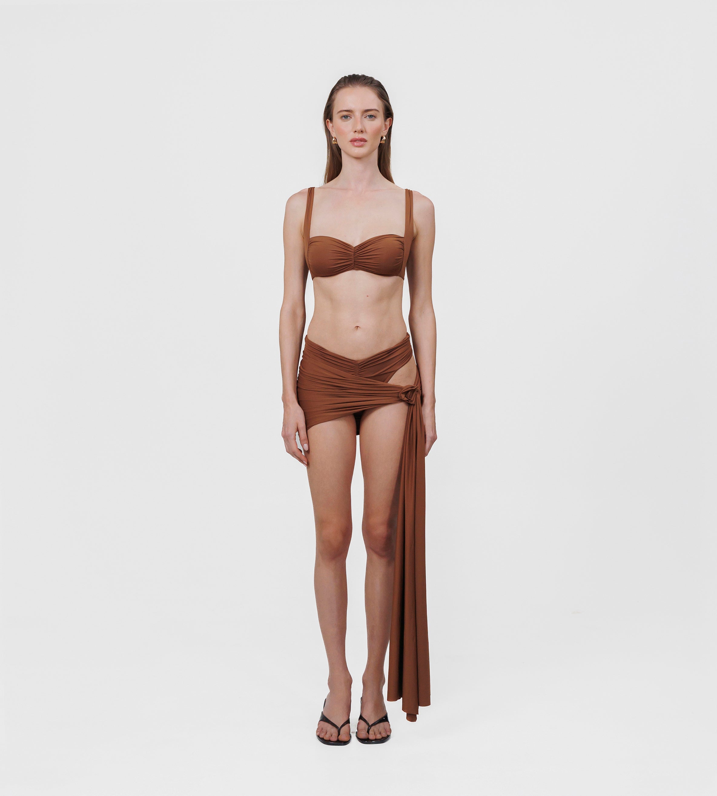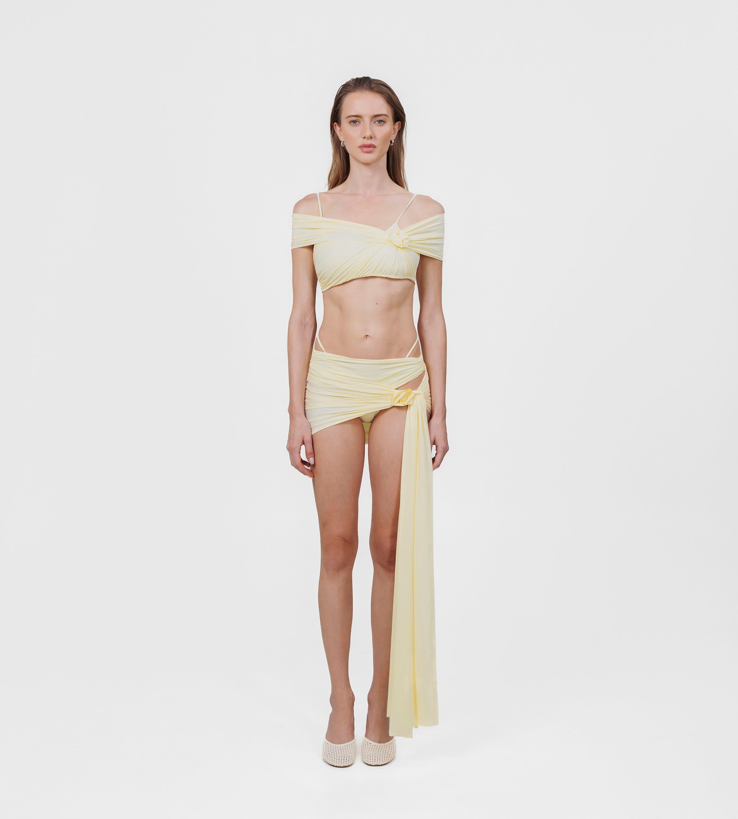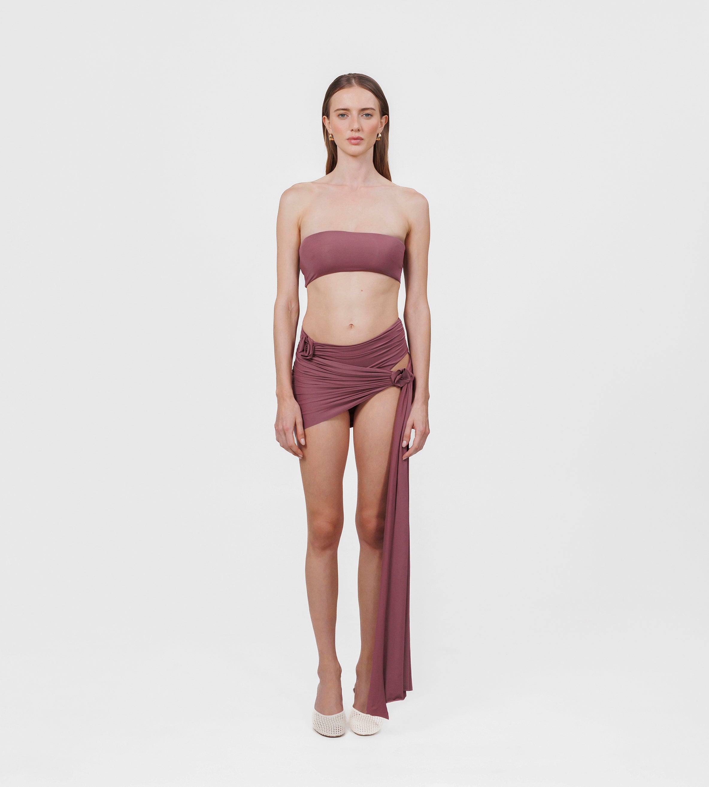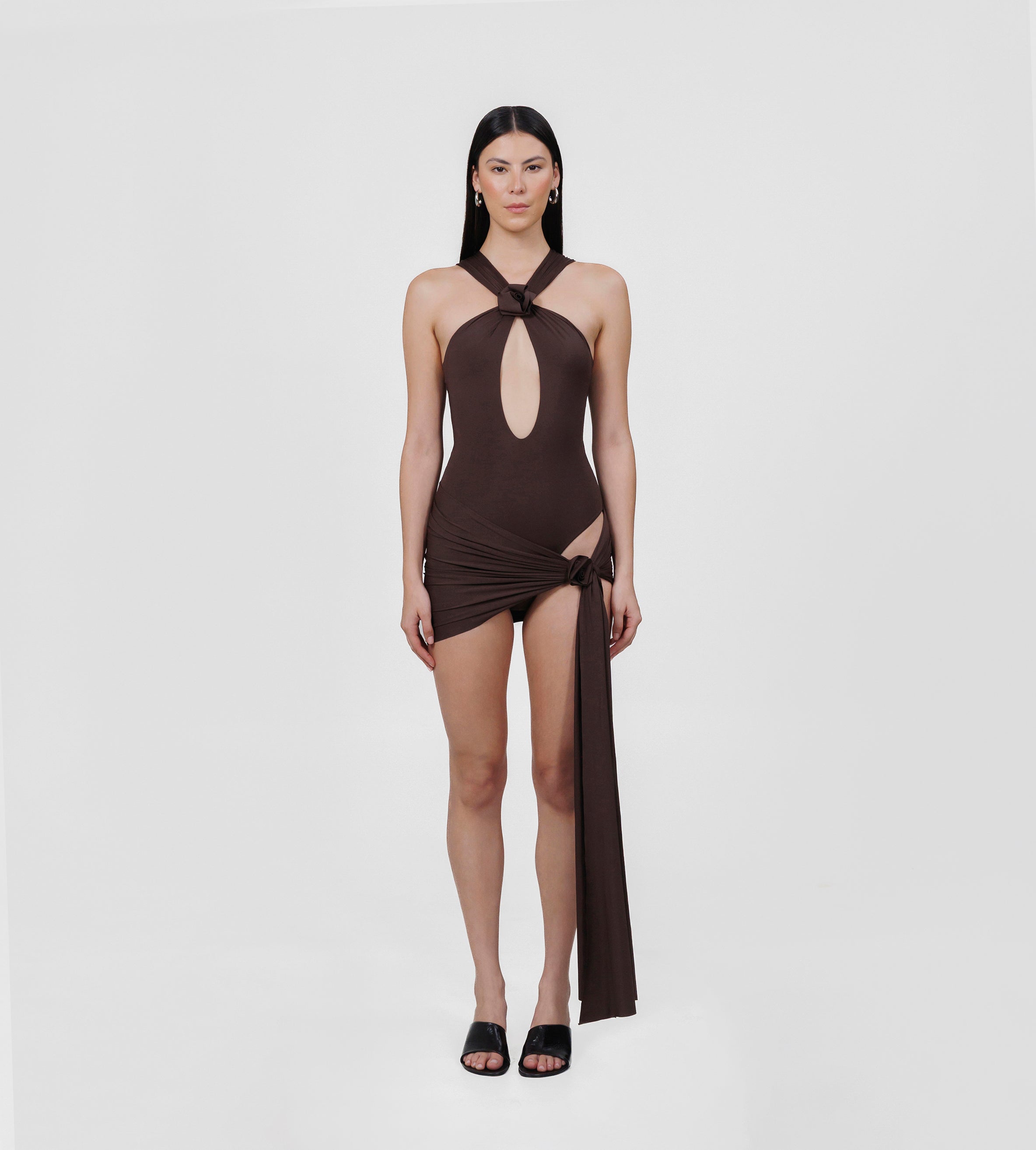 The Pestagua cover-up is crafted in a stunning array of vibrant tones that effortlessly complement any style. It features an asymmetric silhouette, a playful sash, and a delicate flower detail showcasing our new 3D floral design.