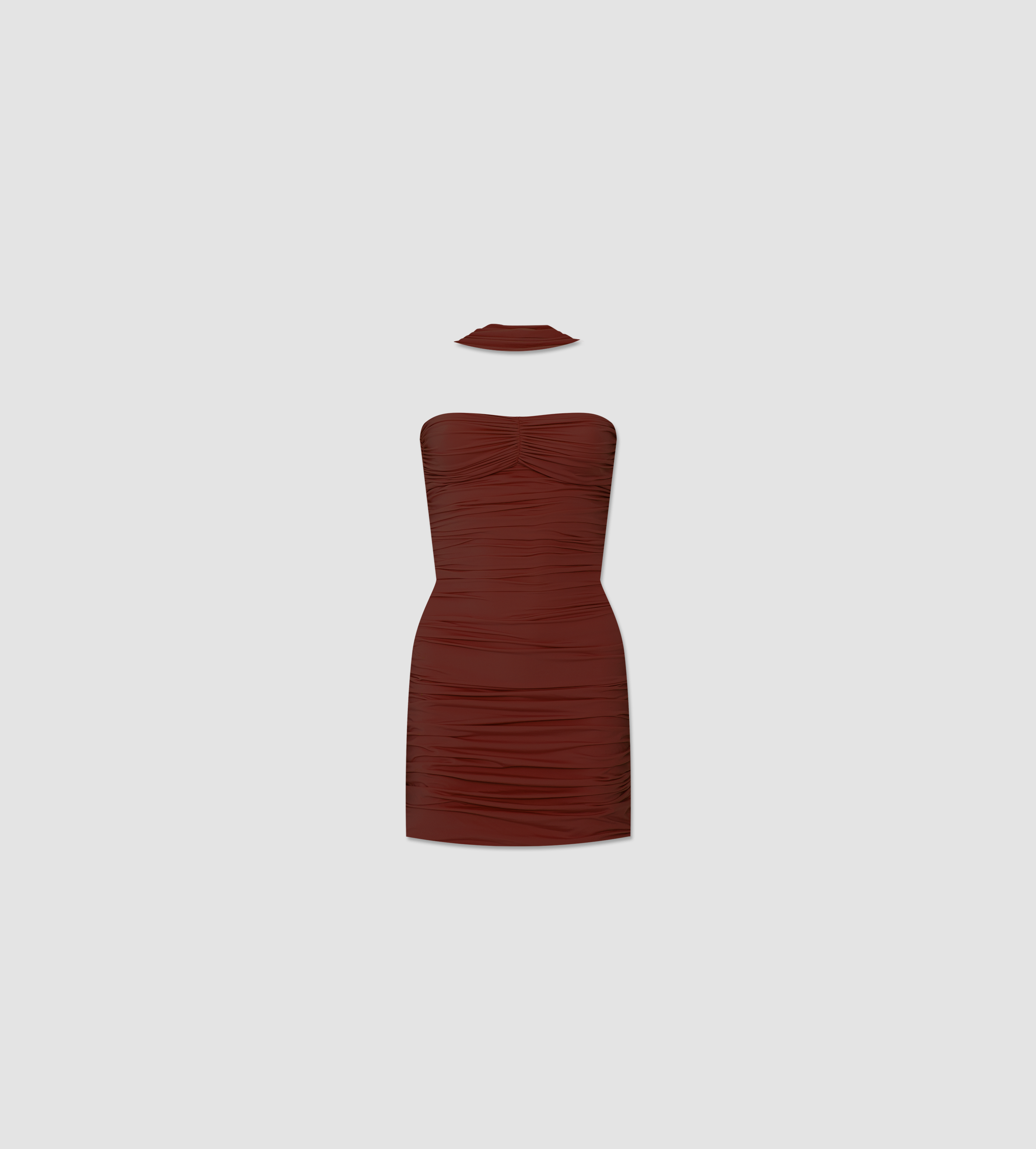 Our Quimera mini dress presents a versatile and creative design, with a semi-sweetheart neckline, fitted ruched silhouette, multifunctional sash/straps detail, cut-out open back and 3D handmade floral detail, we provide you with 3 styling options — let's discover many more.