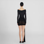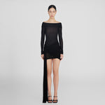 The Rompe Cintura skirt features an asymmetric ruched arrangement that gracefully hugs the body, culminating in a dramatic sash and an intricate 3D floral accent. Crafted from and structured Italian knit with a luxurious feel, this piece seamlessly blends movement and texture.