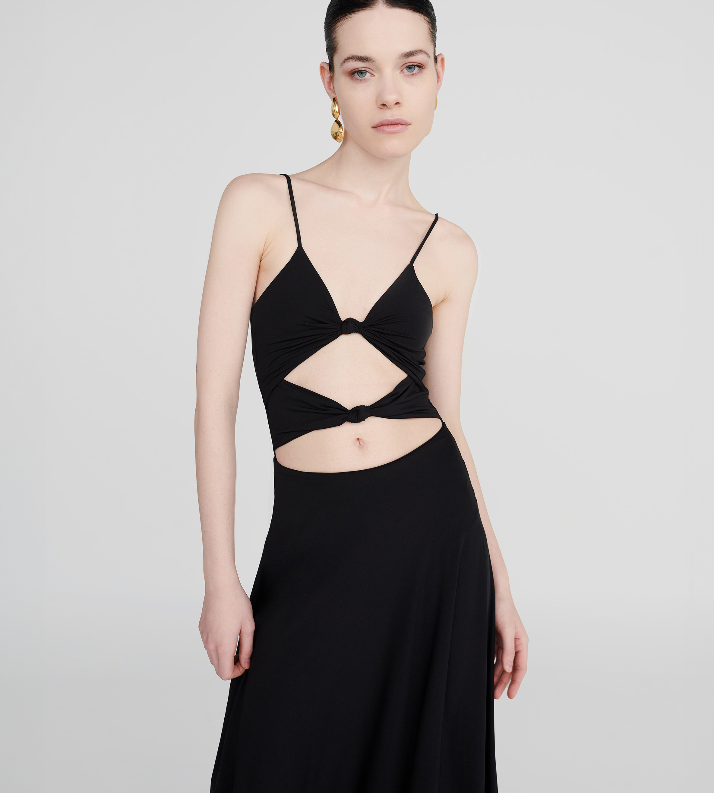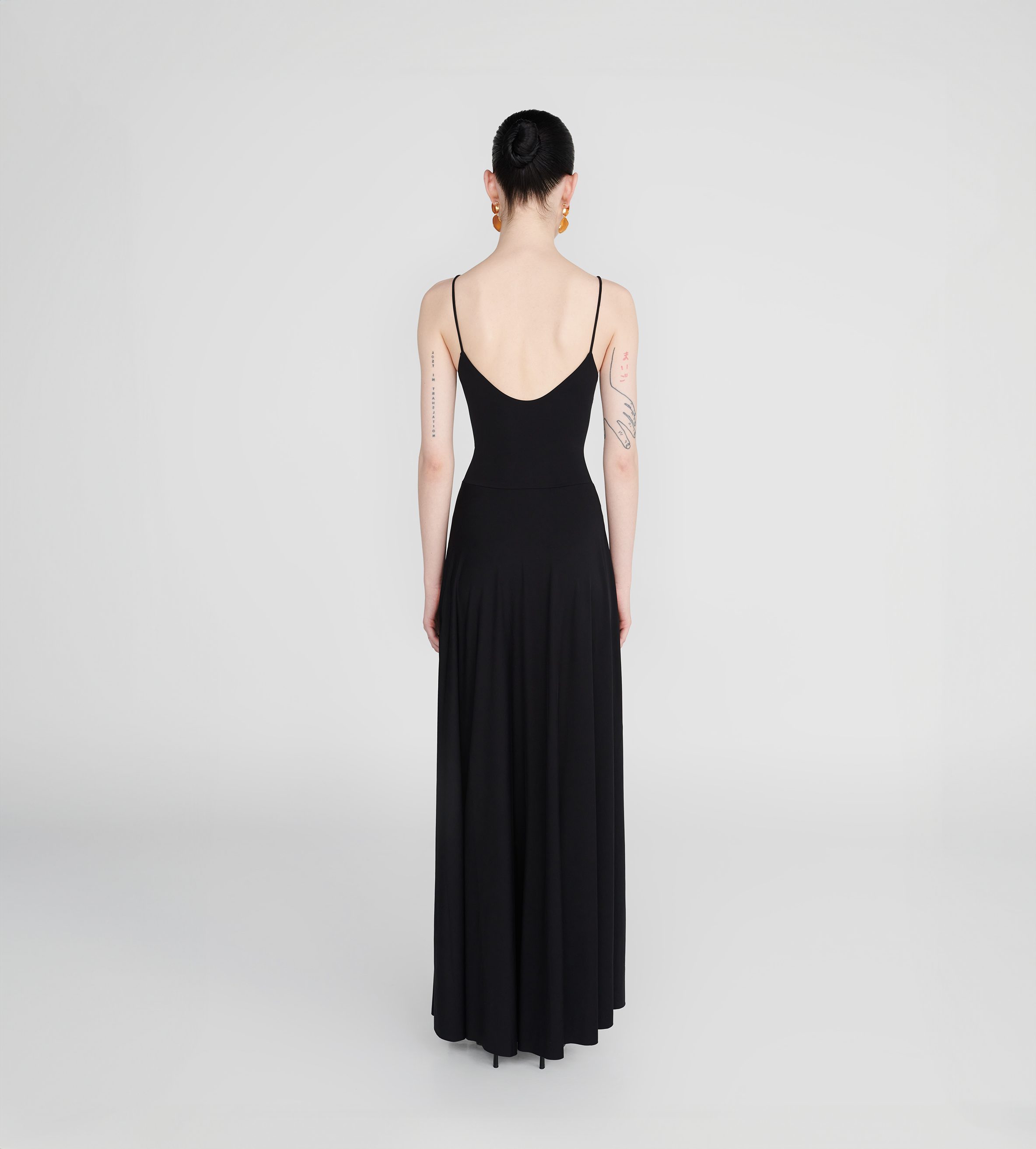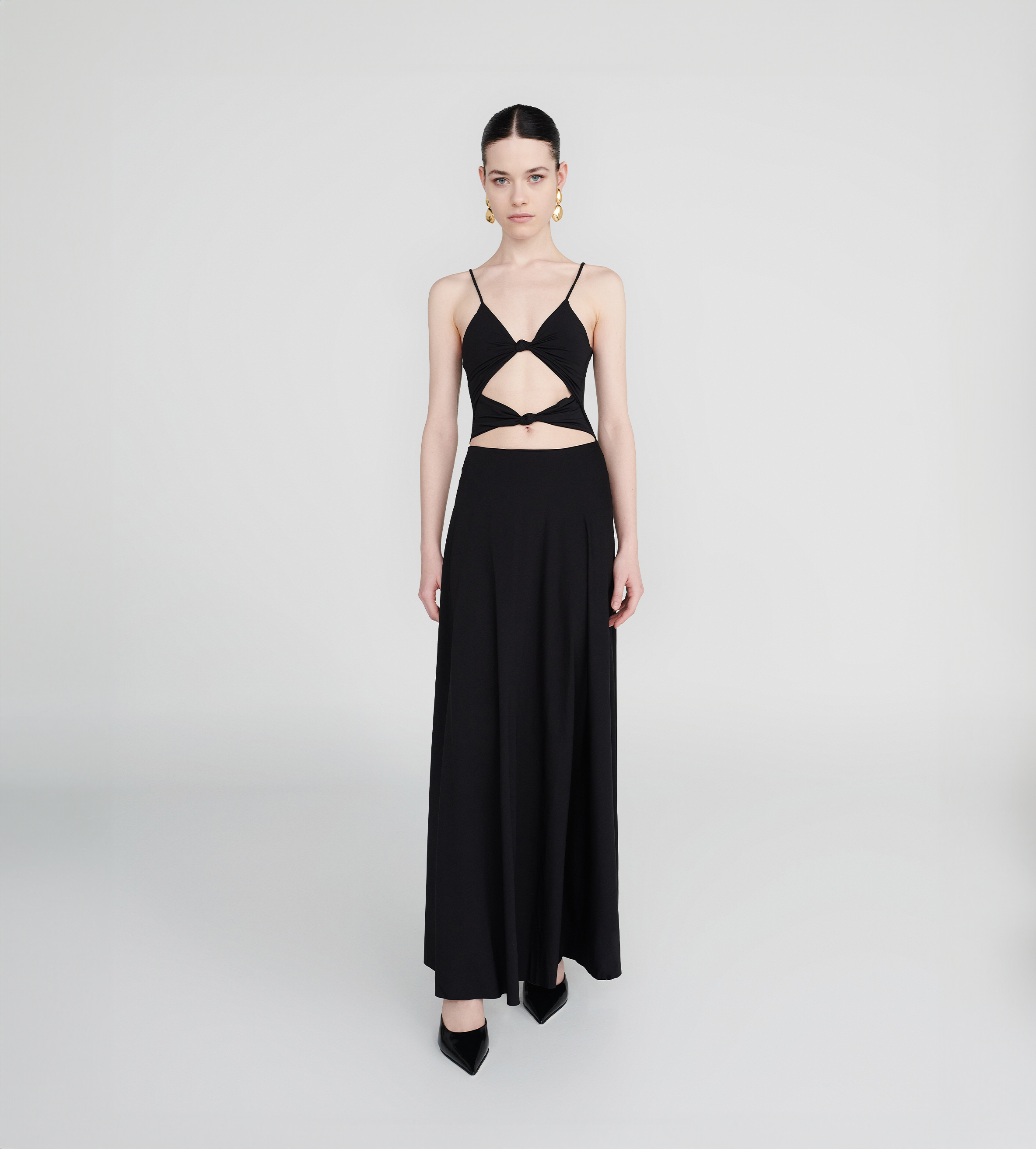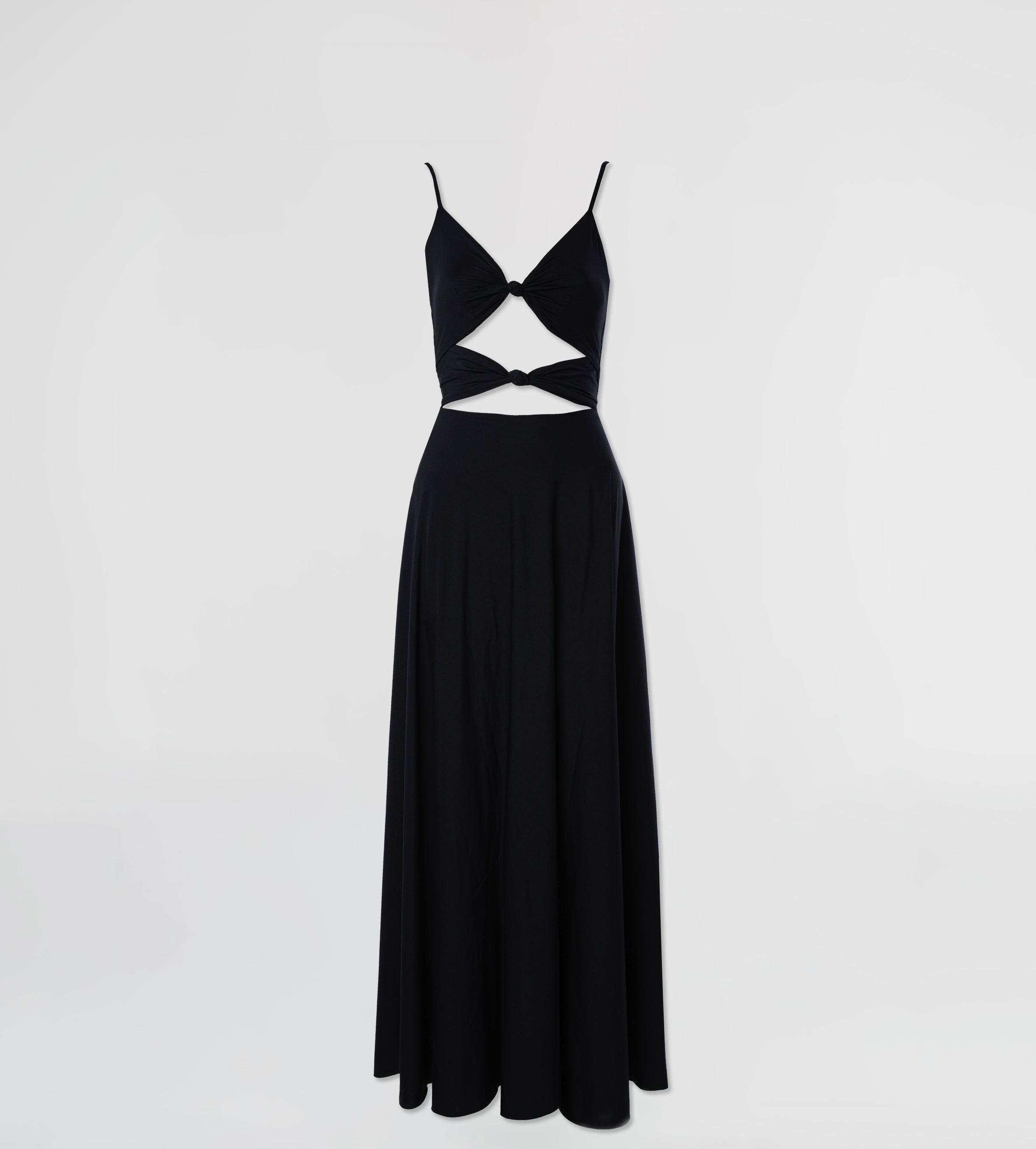 Reversible maxi dress, one side with thin straps and double twist-knot; on the other, abdomen cut on one side and round neckline. Includes high-waisted underwear that stylizes the figure. These are special edition from Mujeres de Agua HS/22 collection.